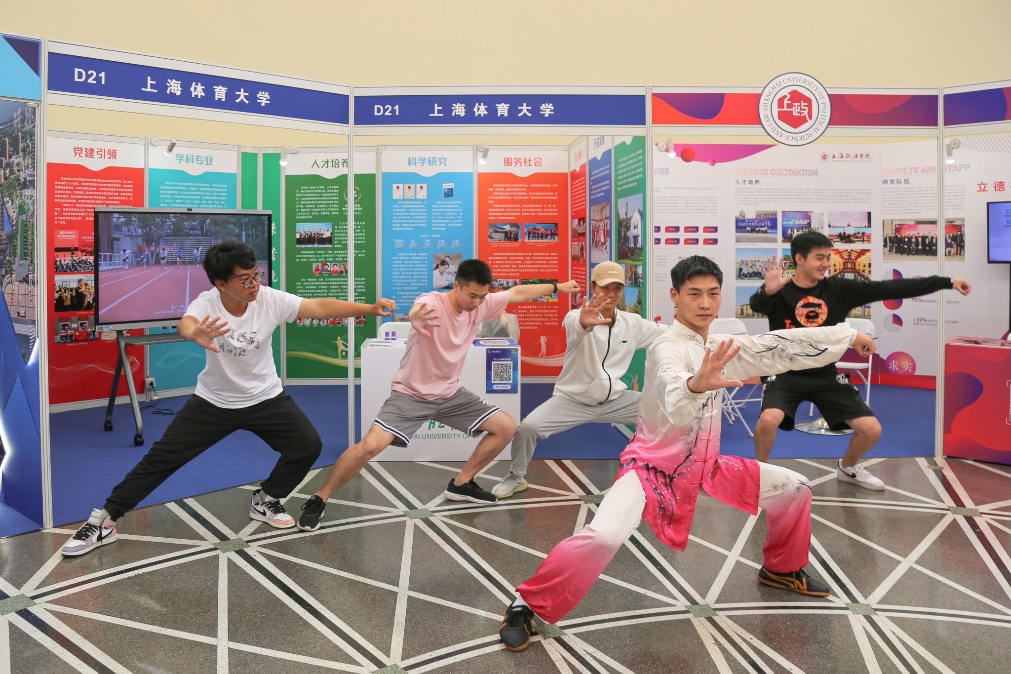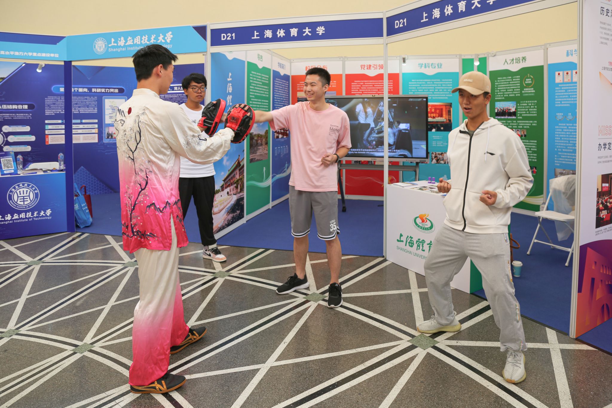 为进一步突出主题,营造活动现场的浓厚氛围,多维度呈现育人成果,现场特别设置了太极拳、太极扇展示以及武术体验互动环节,通过武术专项学生带着现场观众一起演练,展示出体育大学学生良好的精神风貌,充分诠释武术在教人识礼、磨练意志品质等方面的教育功能,让亲临现场的广大中小学生感受中华武术文化的魅力,提升了大众对中华武术的认同感与参与度,同时也为展台增添了不少人气。教博会组委会办公室现场安排了特色导览线路打卡换礼活动,红足一1世足球网官方网站展位作为本届展会特色导览推荐单位,为观众准备了丰富的校园文创产品,受到现场观众的欢迎。