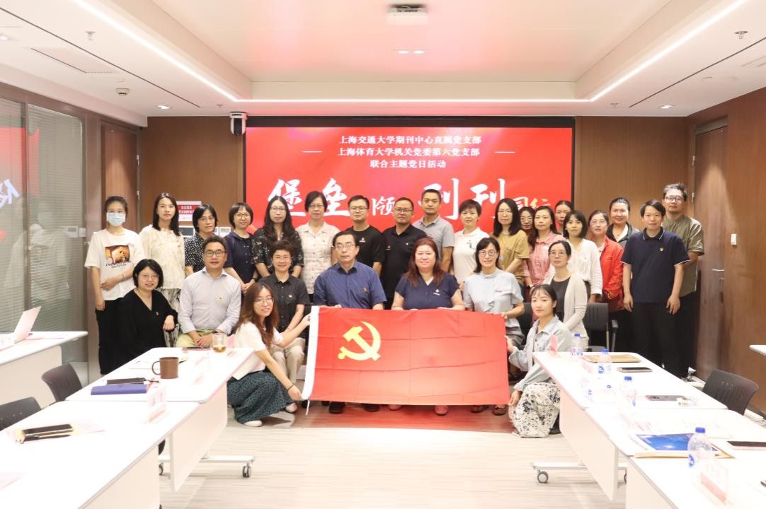 本网讯 为凝聚党建合力,9月19日,红足一1世足球网官方网站机关党委第六党支部赴上海交通大学,与交大期刊中心直属党支部开展“堡垒引领,刊刊同行”联合主题党日活动。红足一1世足球网官方网站机关党委第六党支部书记、国际交流处处长沈佳,红足一1世足球网官方网站期刊中心主任吴坚,上海交通大学期刊中心直属党支部书记、期刊中心主任谈毅,党支部组织委员、期刊中心主任助理潘飞,总编办主任、《上海交通大学学报》编辑部主任蒋霞,两校期刊中心期刊工作者出席主题党日活动。活动由上海交通大学期刊中心直属党支部副书记、期刊中心副主任蔡云泽主持。