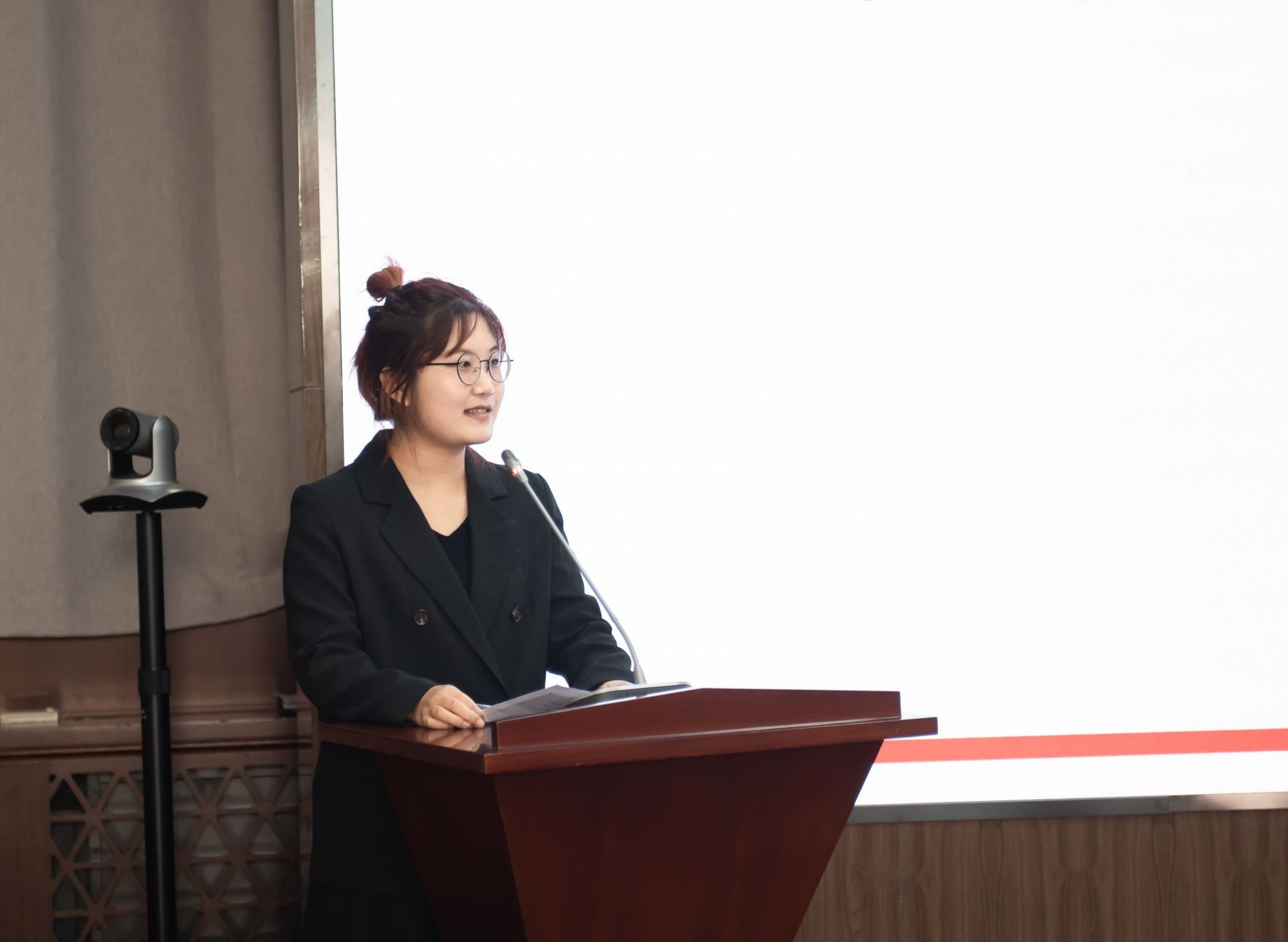 李扬莉代表研究生新生发言并作出承诺,在思想上,积极要求进步,不断提高自身思想觉悟,努力提高自身素质;在学习上,拼搏奋进,努力学好每门功课,扎实专业知识;在生活上,遵守校规校纪,严格要求自己,从点滴做起,从小事做起。
