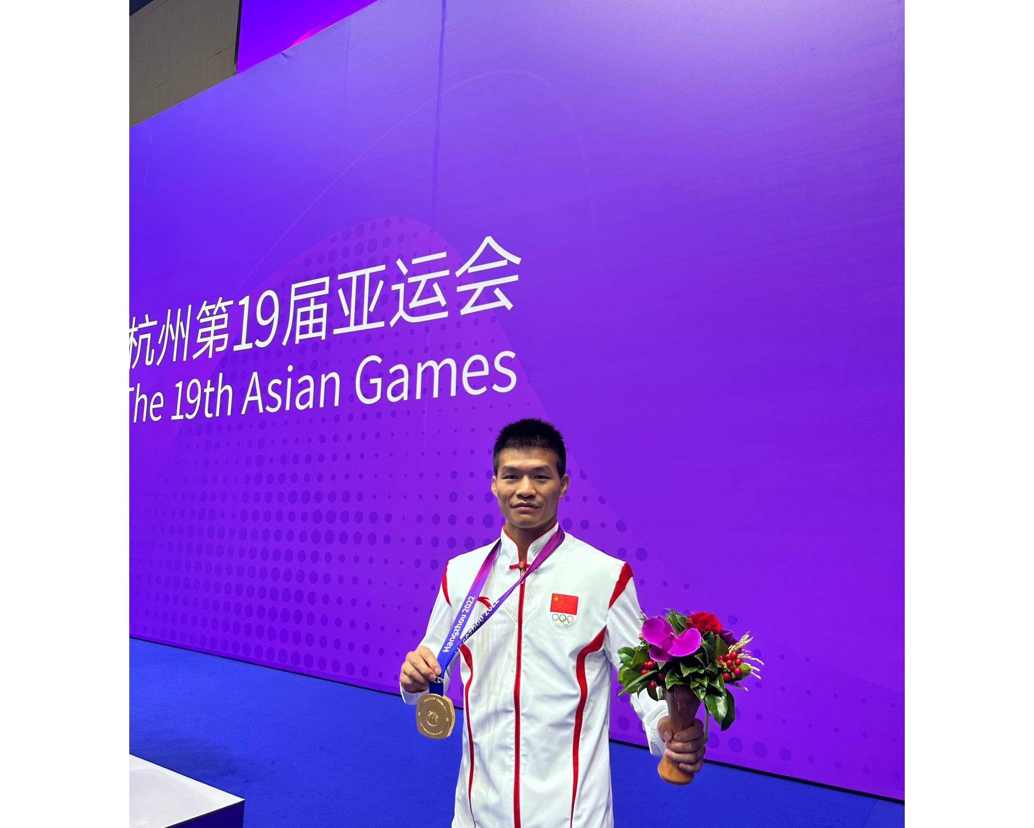 本网讯 2023年9月28日,第十九届杭州亚运会武术散打决赛在杭州市萧山瓜沥文体中心体育打响。我院教师江海东在武术散打男子56公斤级决赛中获得冠军。