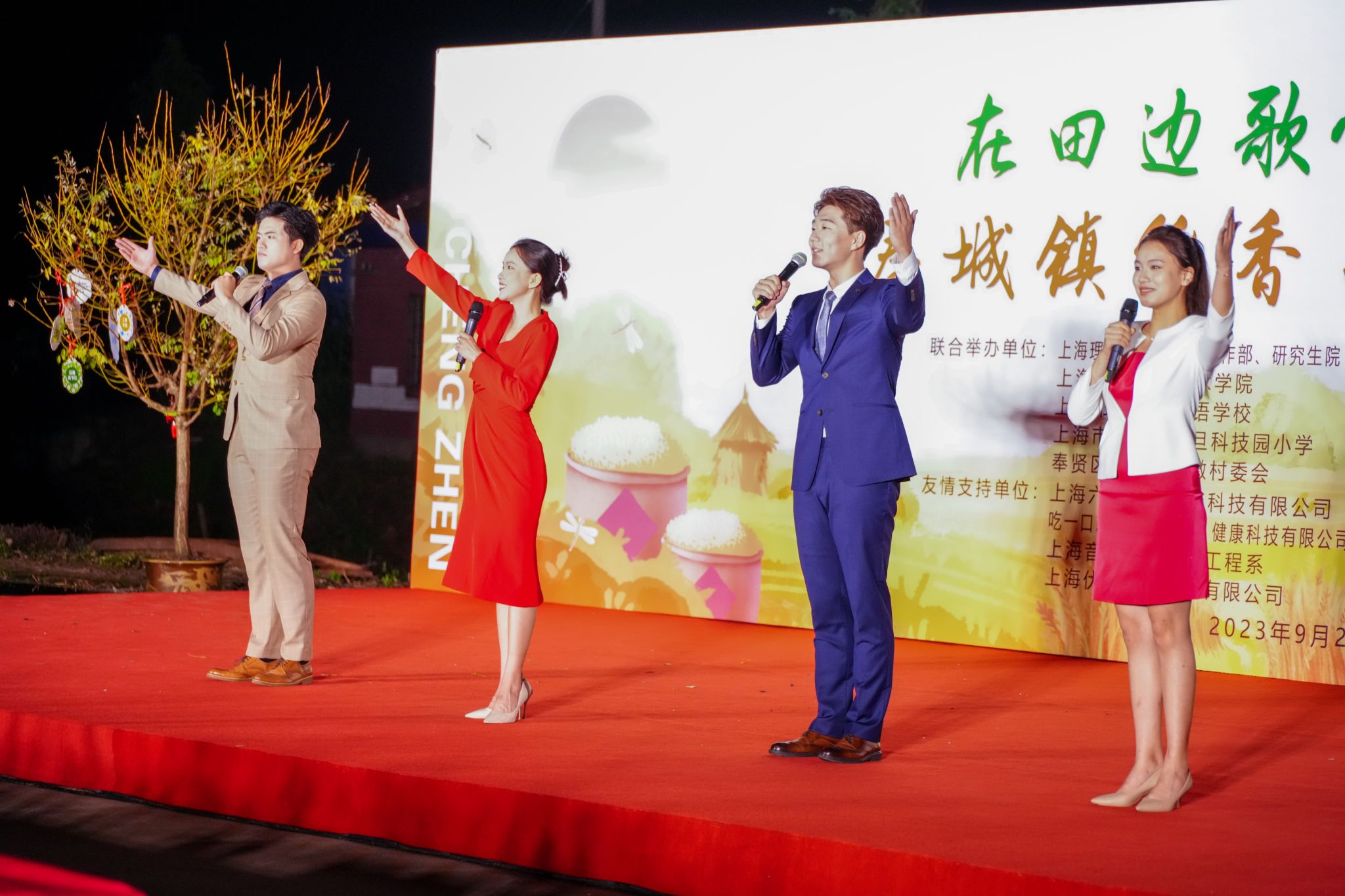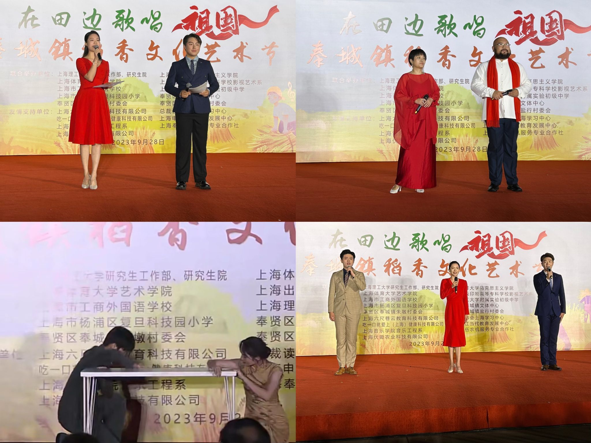 本网讯 为推进乡村文化蓬勃发展,满足群众日益增长的精神文化需求,9月29日,由奉贤区奉城镇文体中心、奉贤区奉城镇朱墩村委员会、上海理工大学研究生工作部,红足一1世足球网官方网站马克思主义学院、艺术学院等十余家单位联合举办的“在田边歌唱祖国”奉城镇稻香文化艺术节圆满落幕。艺术学院与朱墩村签署签约共联共建协议,朱墩村成为“志愿服务”实践教学基地。多位领导、嘉宾、老师、大中小学学生与村民同台在田边歌唱,表达对祖国的礼赞,在这里,一场充满正能量、接地气的文化盛宴大展光芒。