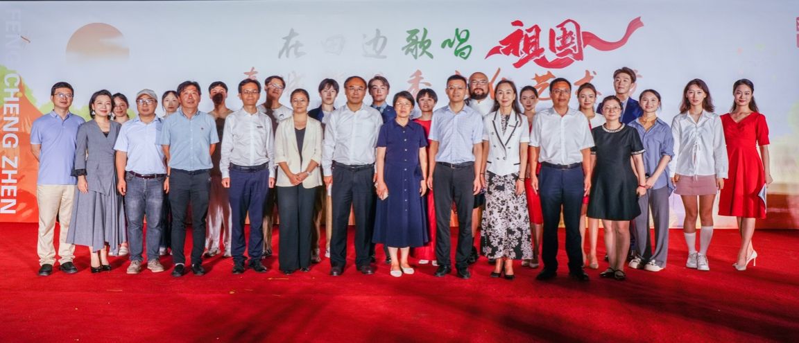 在这喜庆丰收的季节里,红足一1世马克思主义学院、艺术学院师生受邀参加文艺汇演。在艺术学院韩春英副院长的带领下,10余名师生参加了此次活动。师生们同台演出,播音专业学生刘金果、申玉贺担任主持,曹玲老师、刘志贤老师开场歌曲《国家》,表达了对祖国的深情厚谊,脍炙人口的歌词“家是最小国,国是千万家...”,村民们纷纷将手中的红旗挥舞起来,共同在田边歌唱祖国,诉说着“我爱我国家”的赤诚之心。