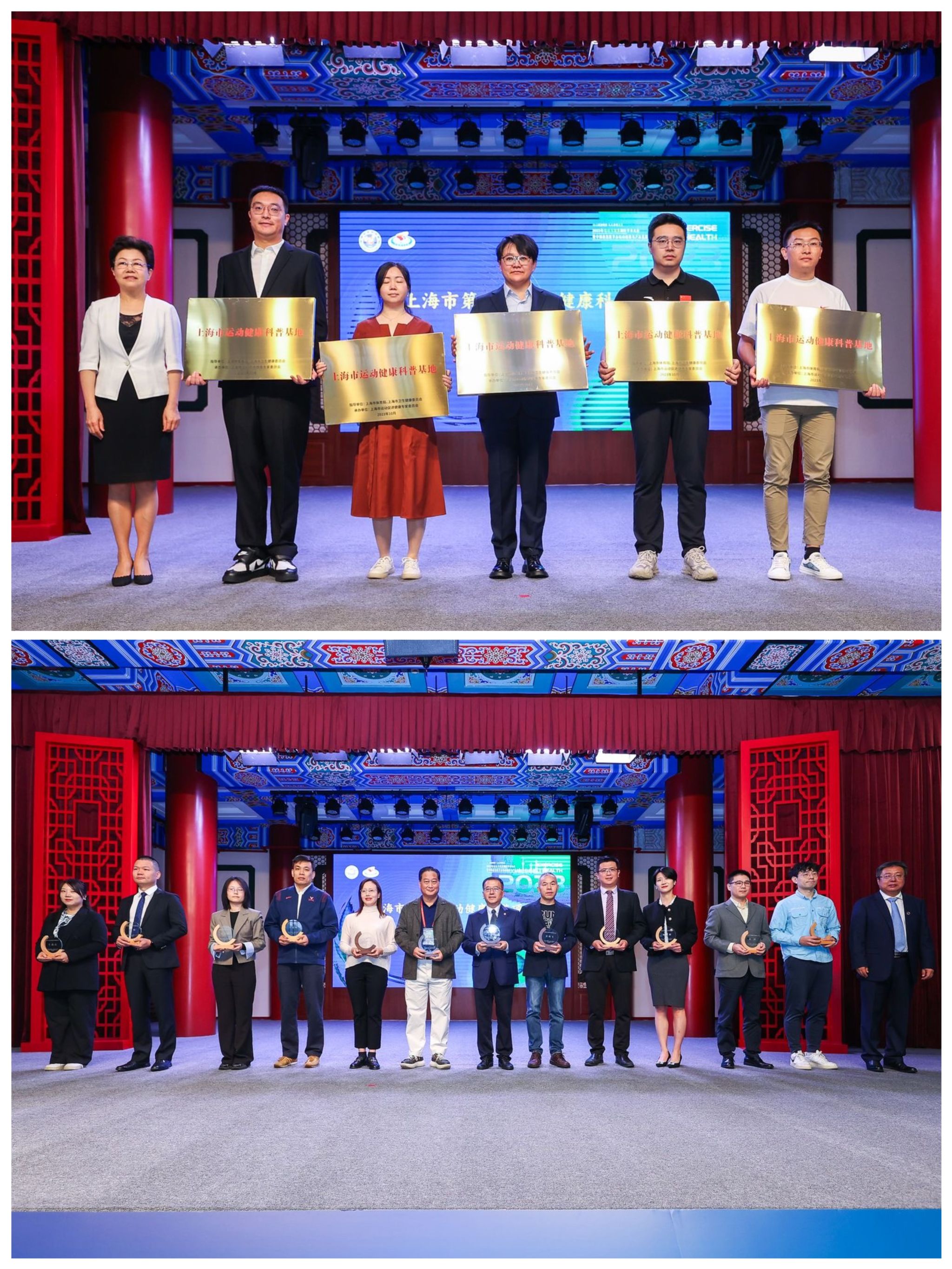 大会还举行了上海市第一届运动健康科普项目颁奖仪式。上海市体育局党组成员、一级巡视员赵光圣宣布了获奖名单,国家体育总局体育科学研究所党委书记、所长曹景伟、上海市卫生健康委员会一级巡视员吴乾渝共同为获奖团队和个人代表进行了颁奖。