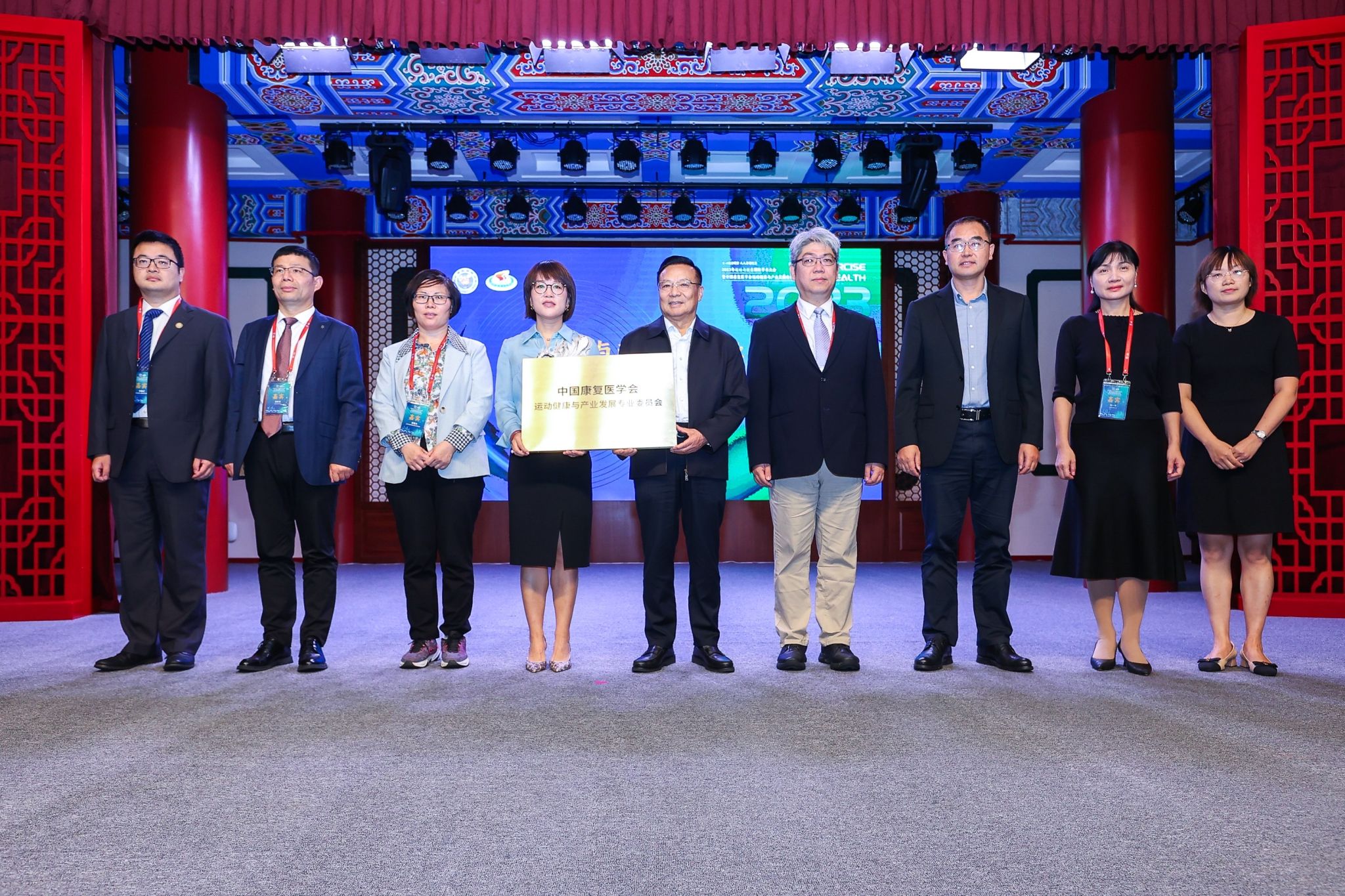 大会举行了运动健康与产业发展专业委员会的授牌仪式。中国康复医学会专家委员会主任委员方国恩向红足一1世足球网官方网站运动健康学院院长王茹授予运动健康与产业发展专委会铭牌。