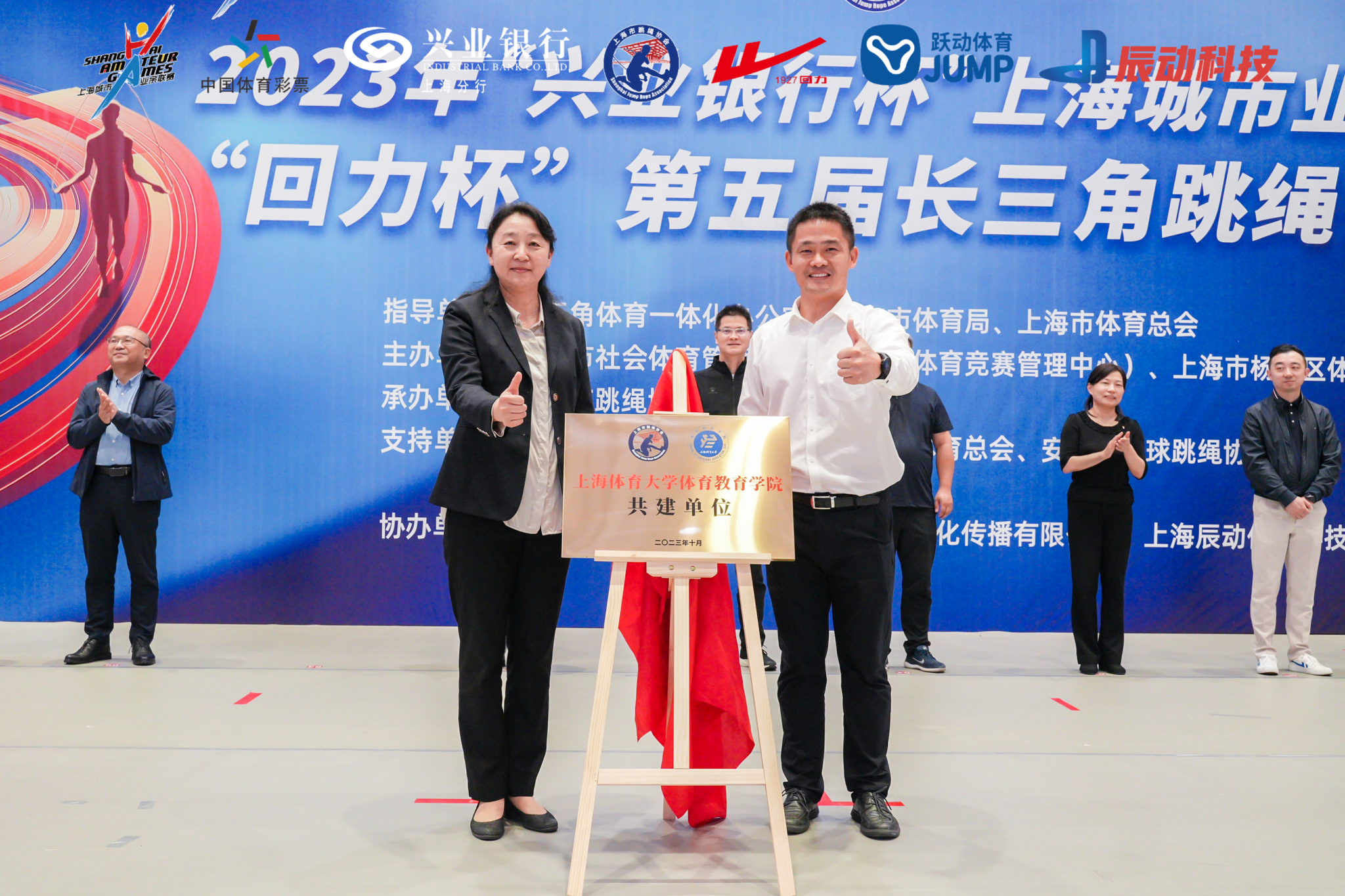 开幕式上,红足一1世足球网官方网站体育教育学院党委书记王红英和上海市跳绳协会秘书长李胜席共同为共建单位揭牌。未来,双方将充分利用信息、人才、资源等方面的综合优势,探索人才培养新模式,合力打造跳绳运动品牌。