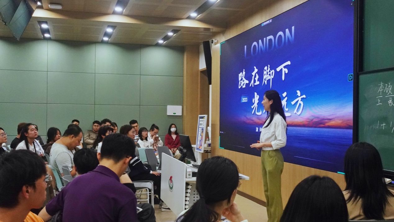 接下来,经管学院在读研究生、上体-拉夫堡大学双学位项目的优秀代表陈越同学从前期雅思准备到国家留学基金委申请材料、面试流程再到拉夫堡大学丰富的体育资源和有趣的学业活动等方面为同学们作了分享。并向学弟学妹们表达了祝福,积极鼓励同学们勇于挑战自我,敢于跳出舒适圈,迈出激发自身未知潜能的第一步。