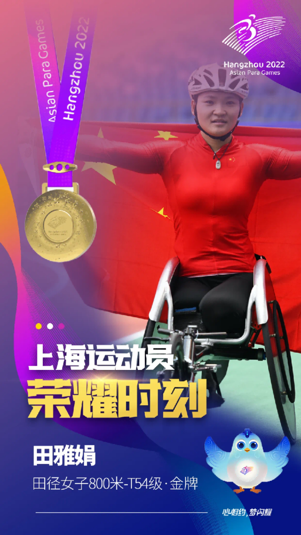 轮椅击剑运动员肖蓉在女子花剑个人B级、女子花剑团体、女子佩剑个人B级、女子佩剑团体比赛中夺得四枚金牌,田径运动员田雅娟在女子400米T54级、女子800米T54级比赛中夺得两枚金牌。