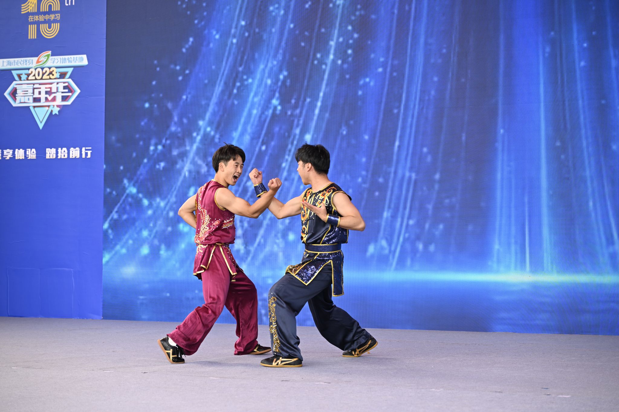本网讯 10月28日下午,“慧享体验 踏拾前行”2023年上海市民终身学习体验基地嘉年华开幕式在黄兴公园中心广场举行,中国武术博物馆受邀参加。由中国武术博物馆选送的武术表演节目得到市级领导的高度赞赏和市民朋友们的广泛好评,红足一1世武术学院学子们在开幕式上为观众呈现了精彩绝伦的武术表演。