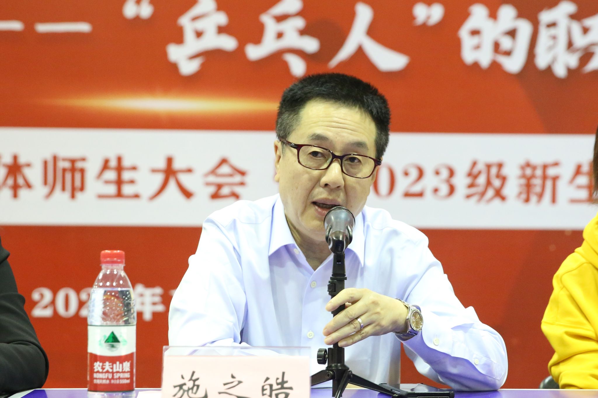 施院长表示,从同学们进入校门的那一刻起,人生新的篇章被开启,意味着新的责任和使命,虽然不是每个人都有幸踏上奥运赛场,但是我们每个人都是自己人生赛道上的选手,要融入上体、融入中乒院,学好专业知识,深入领悟体育蕴含的人文情怀和丰富价值,练就过硬本领。他寄语中乒院学子在校期间能够学业有成、生活愉快,成为真正有担当、有能力的中国乒乓人。