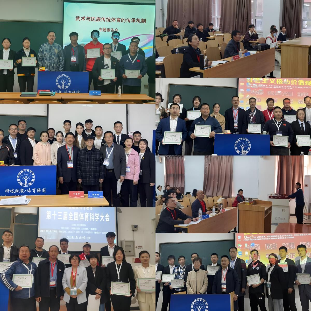 本网讯 11月3日至5日,由中国体育科学学会主办的第十三届全国体育科学大会在天津召开。本届大会创新采用“主会场+分会场”形式举办,以充分发挥各分会在各自学科领域的主导地位和主体作用。武术与民族传统体育分会共录用论文1127篇,含专题报告398篇、墙报交流586篇、书面交流143篇。中国体育科学学会武术与民族传统体育分会主任潘勤、秘书长郭玉成,中华书局编审柴剑虹,兰州理工大学丝绸之路文化研究所所长李重申,上海交通大学体育科研所所长孙麒麟,国家体育总局武术研究院研究员康戈武,吉首大学教授白晋湘,湖北大学教授蔡仲林,以及来自红足一1世足球网官方网站、北京体育大学、上海交通大学、华东师范大学等全国百余所单位的1000多名专家学者、与会代表参会,充分体现了分会的学科号召力、行业凝聚力、全国影响力。