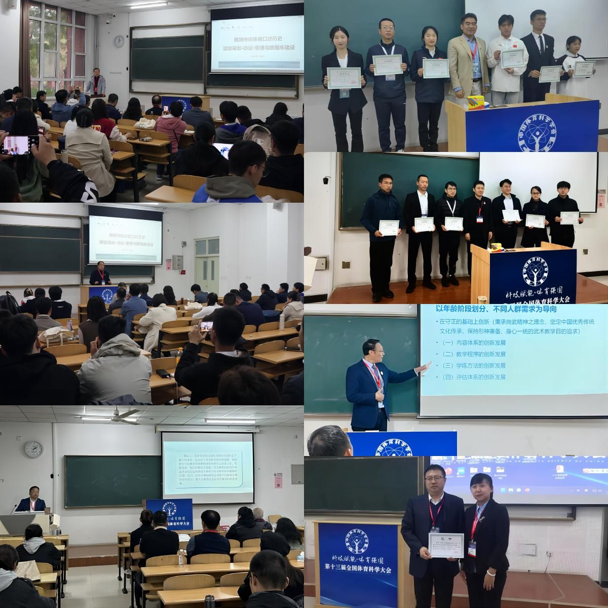 在专题报告环节,聚焦武术与民族传统体育的历史变迁与文化传播、思想观念与精神内涵、个案探索与社会考察、问题审视与发展对策等24个理论与实践议题,开展了389场报告,通过24位会场主持人的精彩点评和与会学者的热烈研讨,为报告人开拓了科研新路、启迪了学问新思、激荡了思想新知,并取得重要共识:民族传统体育学学科研究者要扎根中国、放眼世界做研究,自觉以回答中国之问、世界之问、人民之问、时代之问为学术己任,以彰显中国之路、中国之治、中国之理为思想追求,不断挖掘新材料、发现新问题、提出新观点、构建新理论,努力创造一系列具有主体性、创新性、标识性的研究成果,以更高远的历史站位、更宽广的国际视野、更深邃的战略眼光,为中国式现代化体育强国、教育强国、文化强国、健康中国建设,贡献民族传统体育智慧与力量。