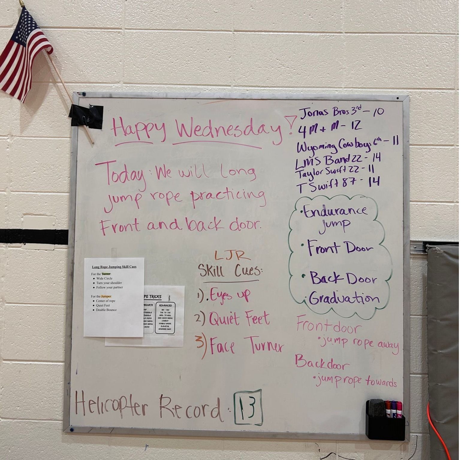 对“体育+文化+教育”跨学科高度融合兴趣颇深的她,在美国访学期间,认真了解和学习怀俄明大学的体育教育课程,并自主设计了以“身心一统”和TGM (战术游戏模型) 为教学理念的跳绳课程,并于11月在拉勒米中学成功进行实践教学。为了课程的顺利进行,她提前做好双语课件,设计启发性的问题,课上伴随音乐展示了一套创新的花样跳绳套路,辅以扎实的英语口语基本功进行授课,在课堂上引起热烈反响。这是一堂成功向美国中学生展示中国传统体育运动项目(跳绳)魅力的体育课,在锻炼学生体育创新思维能力的同时,也向美国青少年传播了优秀的中国传统体育文化。此门课程共计6次,为期2周。