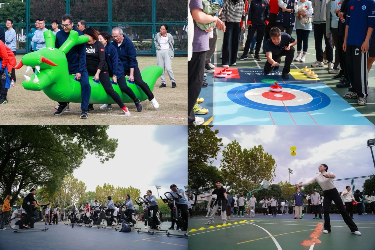 开幕式当天,田径项目比赛和健身项目比赛也同时拉开序幕。田径赛场上运动员们都以饱满的热情、昂扬的斗志、不服输的劲头参与到比赛当中,人人奋勇、个个争先,很好地诠释了“勇于竞攀”的上体精神。开幕式当天除了田径类比赛,还进行了健身项目比赛。同“舟”共济、冰壶“队”战、长绳“8”字跳等8个健身项目比赛分别在中央足球场、多功能运动场、绿瓦大楼前陆续举行,教职工和学生踊跃参与,比赛现场充满了热烈欢乐的气氛。通过健身项目比赛,有效提升了学校师生的凝聚力与合作精神,收获了健康与快乐。