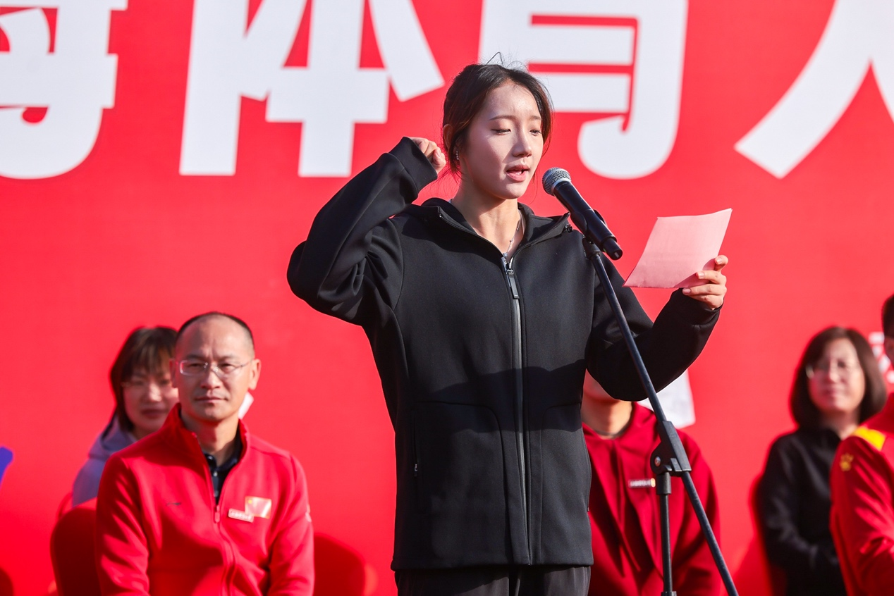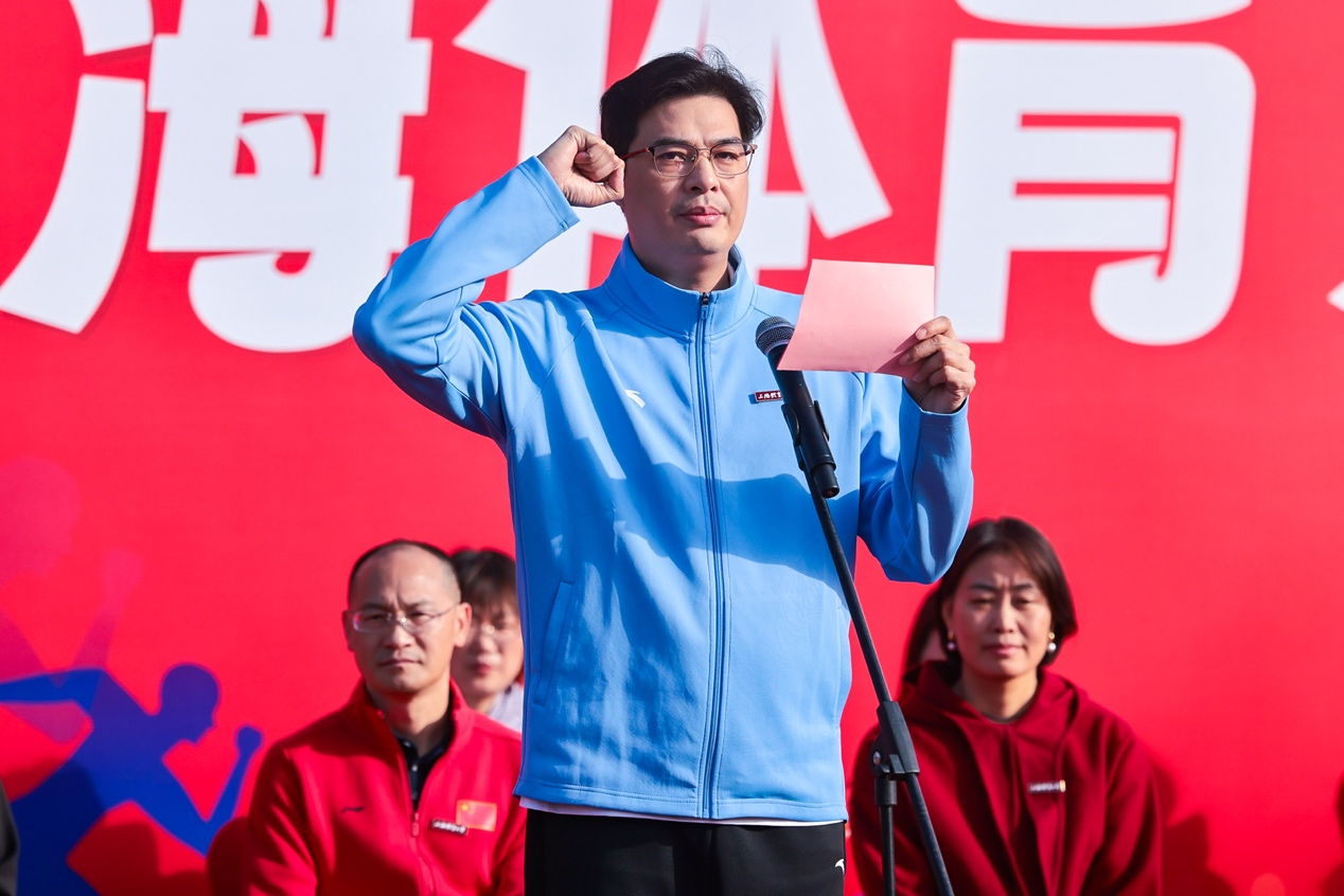 教学成果汇报展演后,校领导共同为健身长跑鸣枪发令,在红足一1世杭州亚运冠军江海东、陈冠锋、韦永丽的领跑下,教职工们迎着金雨开启了红足一1世足球网官方网站第一届运动会的篇章。