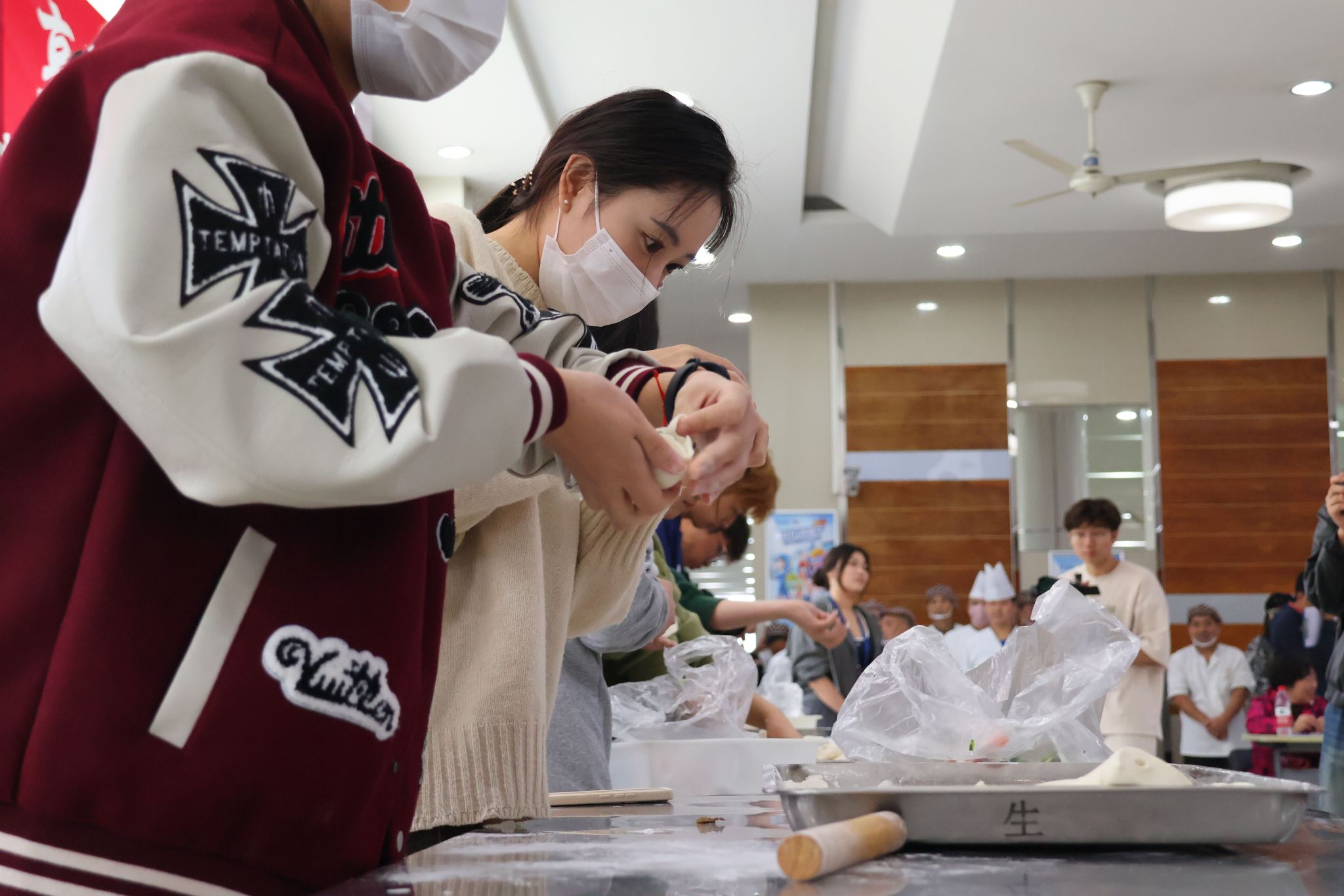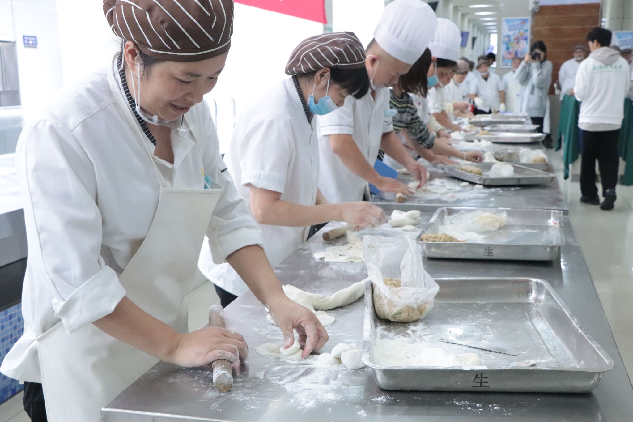 在包菜包、水饺比赛环节,邀请众学生分为几组共同参与比赛,通过自己动手揉面、擀面、包馅、捏形,切实推进劳动教育走深走实。