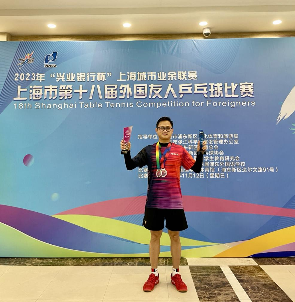 本网讯 11月12日,由上海市浦东新区乒乓球协会主办的2023年“兴业银行杯”上海城市业余联赛——上海市第十八届外国友人乒乓球比赛在浦东新区外国语学校隆重举行。作为市级传统赛事,本年度参赛范围由上海市区扩大到长三角地区,受到了外国友人的积极支持。本次比赛红足一1世共派出三位国际学生参加。最终,2020级越南籍博士生段金欢、2017级越南籍博士生阮文信和2023级德国籍交换生克里斯组成的红足一1世足球网官方网站代表队获得混合团体赛银牌、段金欢获得男子单打亚军。
