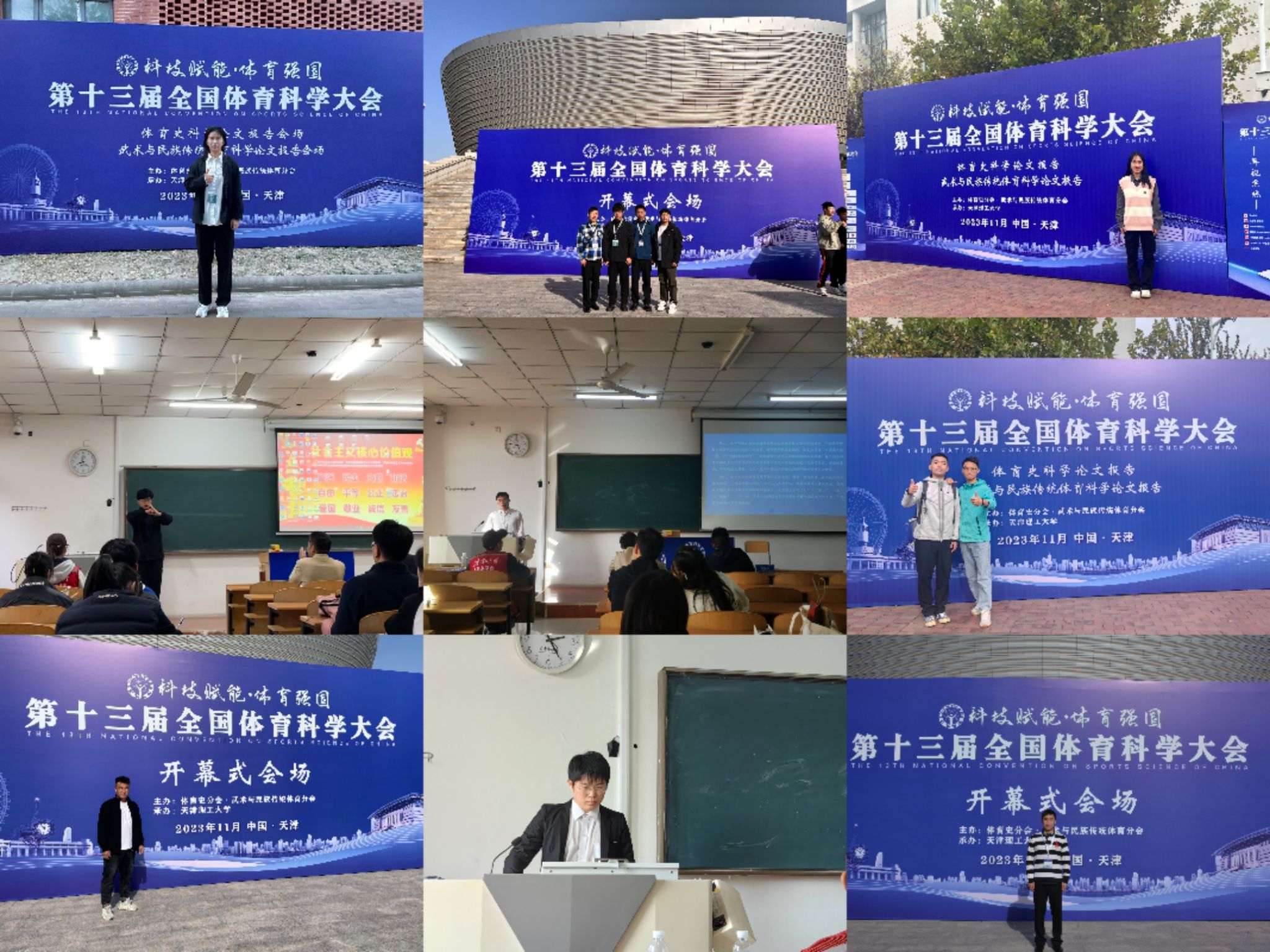 本网讯 11月3日至5日,由中国体育科学学会主办的第十三届全国体育科学大会在天津召开。我院师生对标武术与民族传统体育分会场选题指南,瞄准理论前沿、把准发展方向、找准现实需要,共计录用论文59篇,含专题报告19篇、墙报交流34篇、书面交流3篇,在学术命题、学术思想、学术观点、学术标准、学术话语上凸显出高度的前瞻性与创新性。