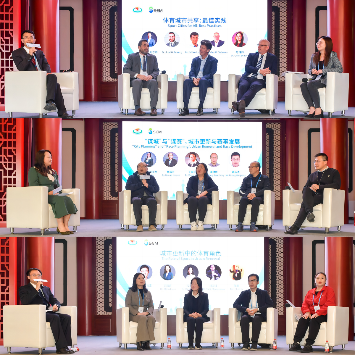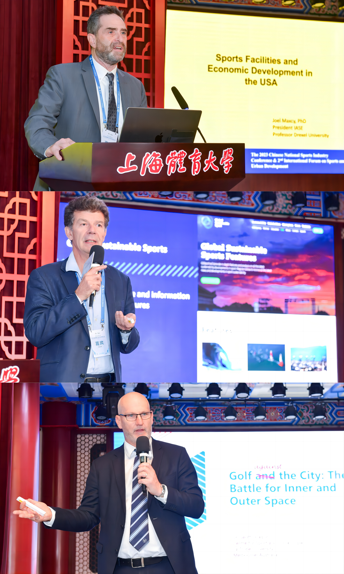 主旨演讲环节中,国际体育经济学主席Joel G.Maxcy、英国全球可持续体育股份有限公司的创始人兼首席执行官Mike Laflin、澳大利亚拉筹伯大学体育与社会影响研究中心主任Geoff Dickson 分别以《美国体育设施与经济发展》《体育之城:前进路向》《高尔夫与城市:内外部空间之争》为主题作了深度研讨。