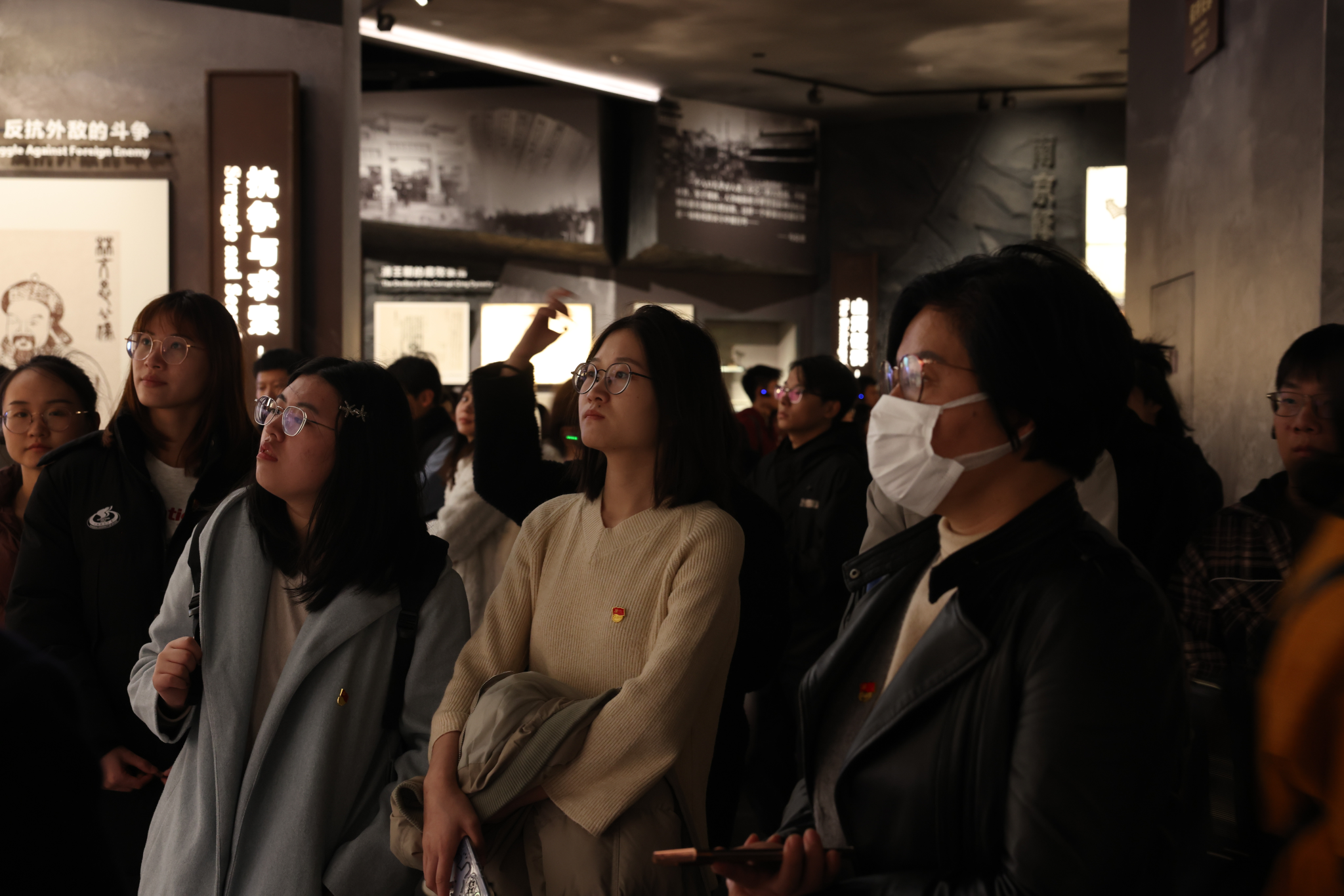 在导游的带领下,新传师生走进展览馆,进一步了解嘉兴这座拥有悠久历史传统和革命传统的城市。从优越的地理环境到最初建城,嘉兴便利的交通,发达的经济和文化,为其作为红色革命城市提供了“天时地利人和”的条件。在红船民兵先锋连中,新传师生通过全息投影,沉浸式观看了王会悟女士在火车站与中共代表见面的伟大历史场景。