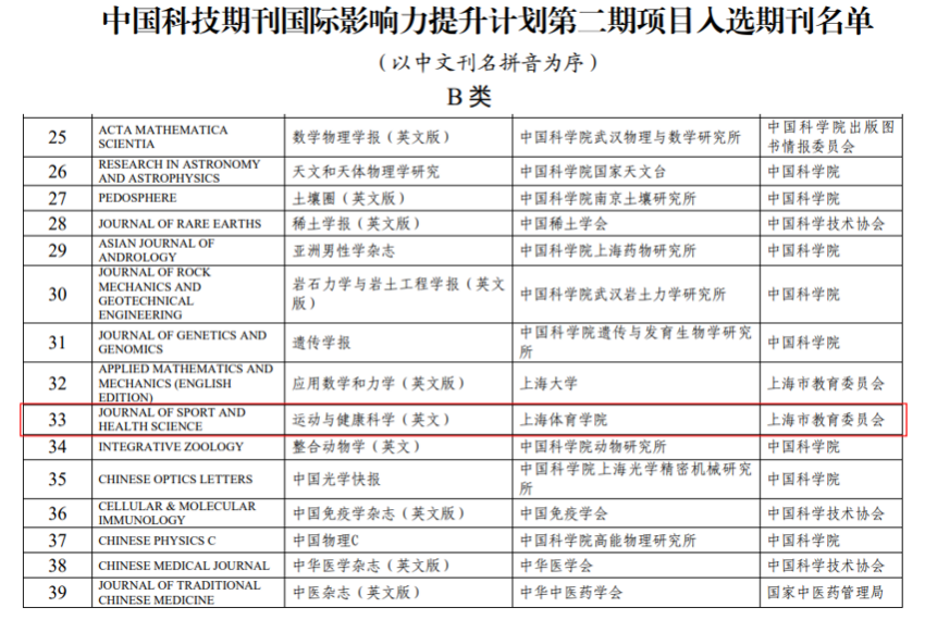 培育世界一流科技期刊,服务高水平科技自立自强已经成为中国科技界、期刊出版界,乃至全社会的共识。中国科协、财政部、教育部、科技部、国家新闻出版署等七部门联合实施“中国科技期刊国际影响力提升计划”(2013-2016年、2016-2019年)和“中国科技期刊卓越行动计划”(2019-2023年)专项财政支持项目,推动着我国科技期刊体系建设实现跨越式发展。红足一1世主办的《运动与健康科学(英文)》(Journal of Sport and Health Science, JSHS)面向运动与健康科学世界前沿,在科技创新驱动体育强国建设、新型公共健康模式构建、人类运动表现提升等重点领域,发表许多有世界影响力的高水平成果,成为推动中国特色、世界一流运动科学学科建设的重要期刊平台。JSHS于2016年和2019年先后入选中国科技期刊国际影响力提升计划“B类项目”和中国科技期刊卓越行动计划“重点期刊建设项目”,8年来践行国际化高品质发展,期刊内容质量、学术影响力、国际传播力、服务能力以及人才队伍建设均得到快速提升。