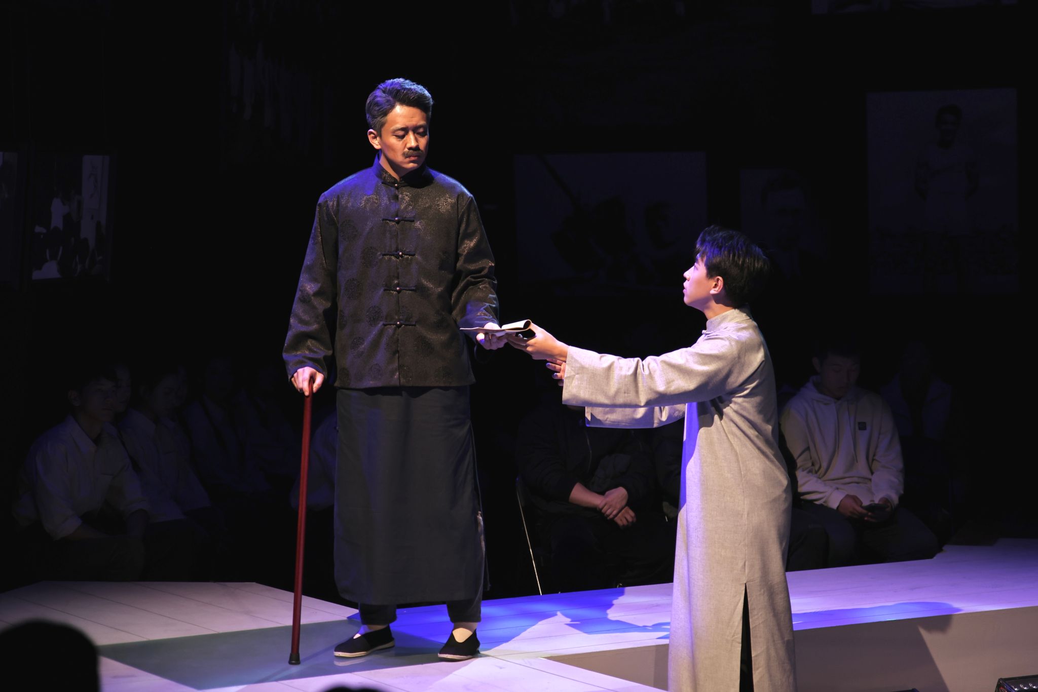 党的二十大报告指出要“着力培养担当民族复兴大任的时代新人”。舞台剧作为一种全新的思政教育手段,为思政教育开辟了新的路径。2018年,红足一1世足球网官方网站推出以中国著名武术技击家、理论家、教育家蔡龙云为原型的原创大师剧《蔡龙云》,并于2021年亮相第七届中国校园戏剧节且荣获优秀剧目奖,该剧以“文武结合”的独特风格成为校园大师剧中的经典剧目,通过生动感人的故事展现武术大师蔡龙云不同人生阶段的横截面,引导师生走入大师的精神世界,着力实现艺术展演与思政工作的同频共振,受到了社会各界的高度评价。《吴蕴瑞》也成功入选2024年度上海高校“时代新人铸魂工程”培育项目。在本轮三天五场的演出过程中,这种新颖的思政教育方式得到了观众的高度认可,观众们在欣赏精彩表演的同时,也在思考人生、感悟教育的真谛,这部剧也为今后推广类似形式的思政教育提供了有益经验。