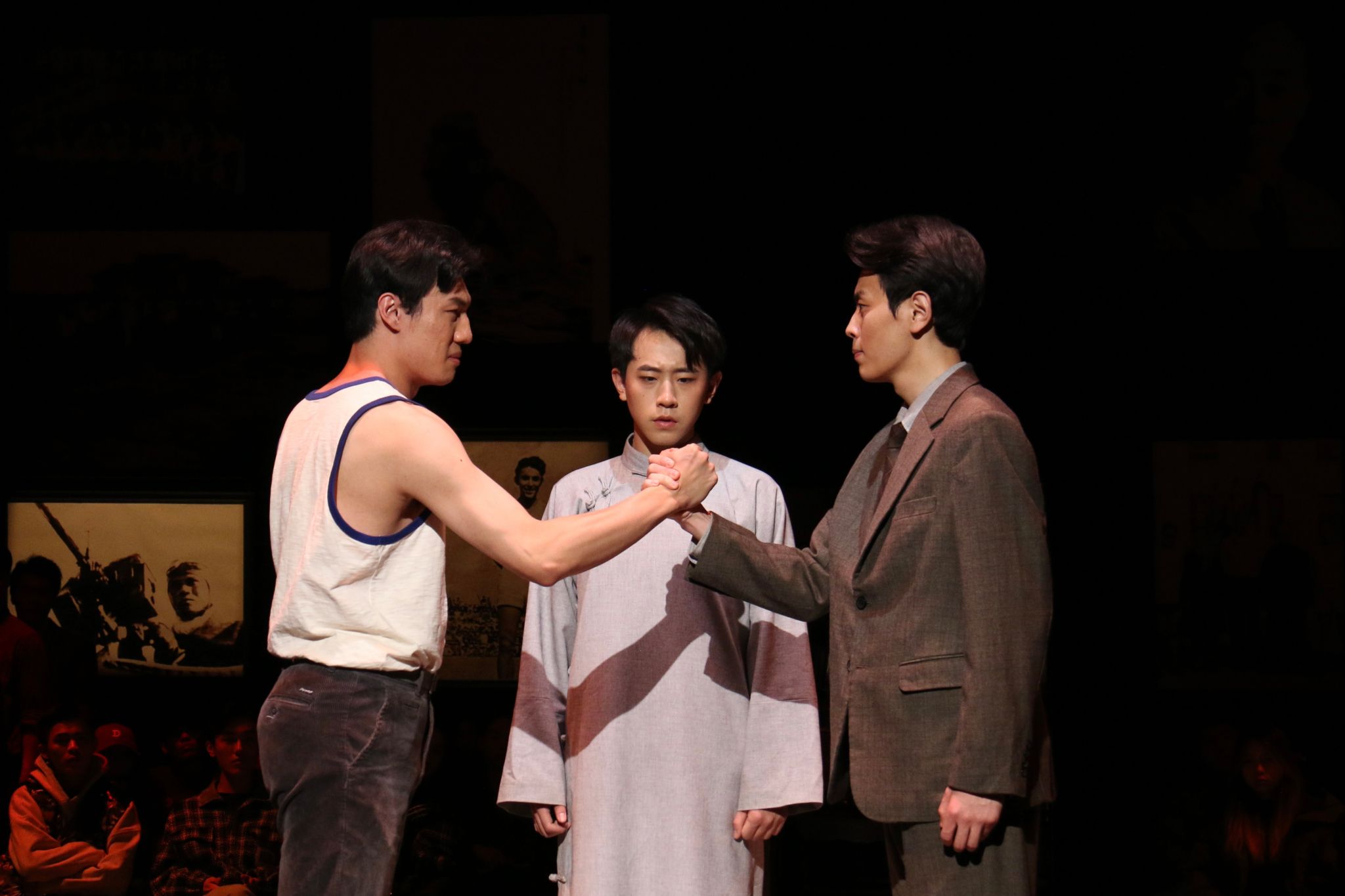 “我感受到在旧中国体育发展是非常艰难困苦的,我们现在能在体育强国之路上一步步迈进,是因为有了先辈们打下的基础,才能得到今天这样的成果。我们要将这样的精神和力量传承下去,传递给每一位观众。”剧中中年、老年吴蕴瑞的扮演者2020级表演专业胡陈浩同学说。这部大师剧不仅仅是一场感人至深的演出,更是一次引导观众思考、关注国家体育事业的实践教育。《吴蕴瑞》通过感人至深的故事和深刻的人物刻画,成功唤起了观众的情感共鸣,将建设体育强国的梦想深深根植于学生们的脑海中。