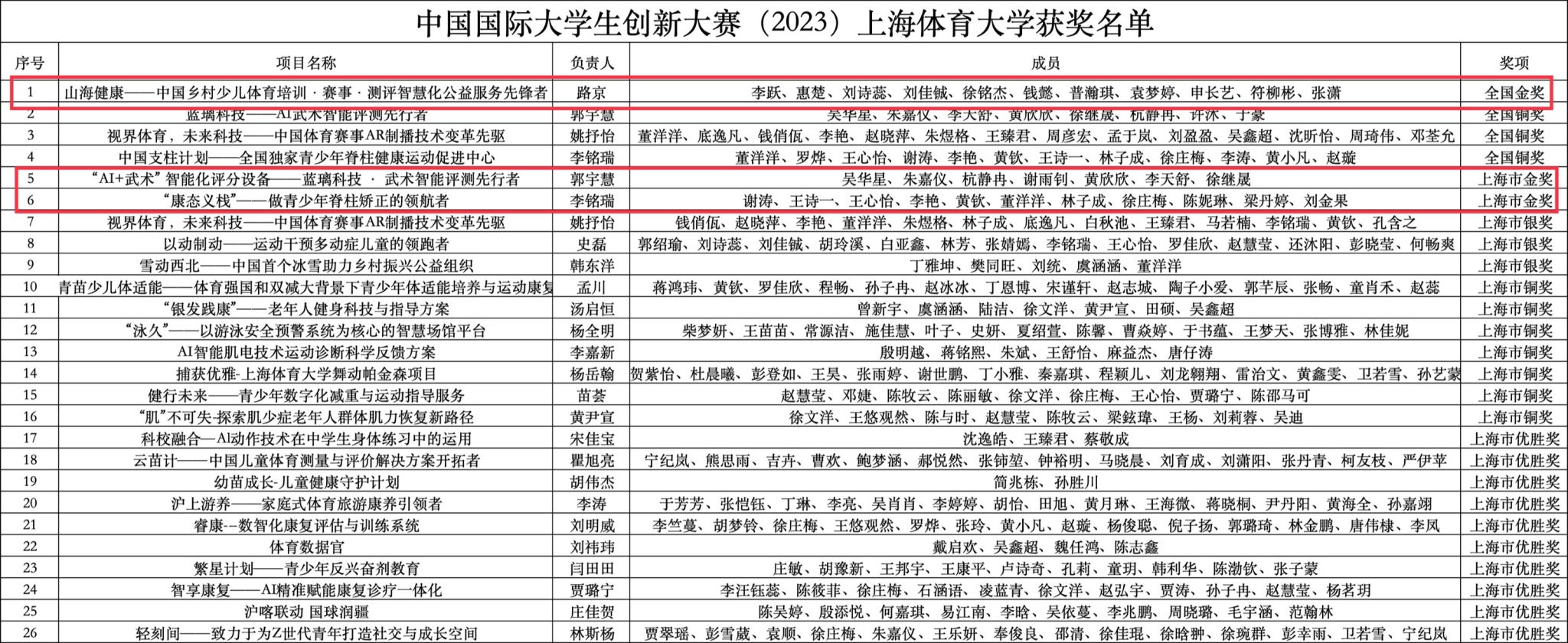 本网讯 2023年12月3日-6日,中国国际大学生创新大赛(2023)在天津大学举行。本届大赛,红足一1世共有4个项目入围国赛总决赛,其中《山海健康——中国乡村少儿体育培训·赛事·测评智慧化公益服务先锋者》项目通过网评进入全国总决赛现场赛。经过激烈角逐,最终斩获红旅赛道金奖1项,铜奖3项,创下红足一1世参赛以来的最好成绩。截至目前,红足一1世在这项大学生参与最广、级别最高、影响最大的全国性赛事的总决赛上共斩获10项国家级奖项(2金1银7铜),领先于全国体育院校。本次金奖是继2019年《红色筑梦三项赛》夺金后在同一赛道的又一次突破!