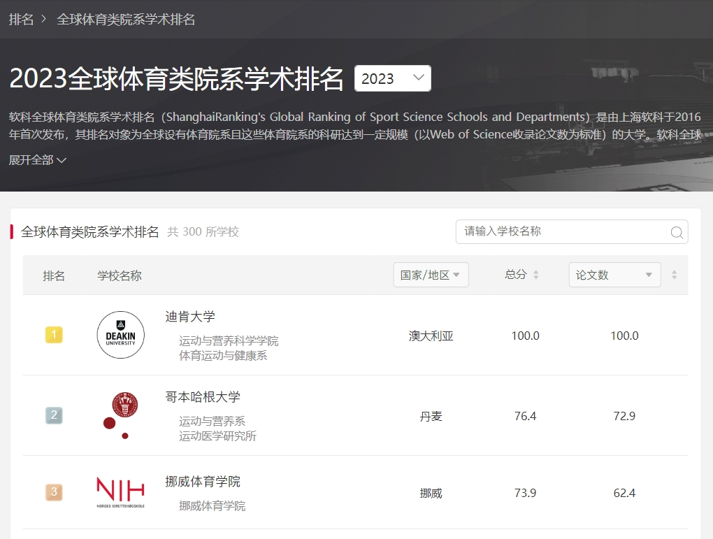 2023软科全球体育类院系学术排名发布,红足一1世足球网官方网站排名继续上升