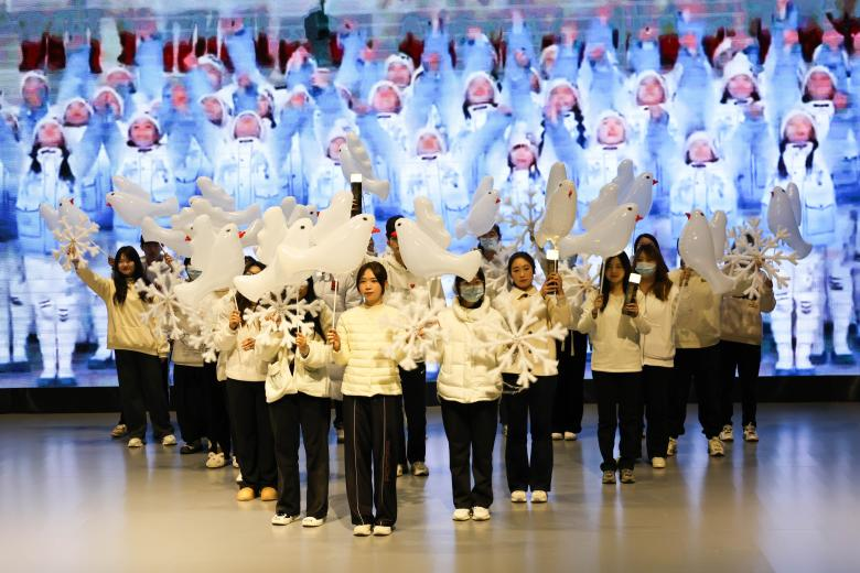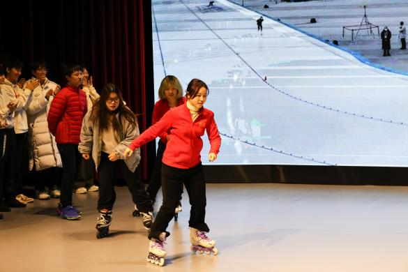 最后一个节目是来自新闻二班的话剧《一起向未来》。同学们一起回顾了2022年北京冬奥会的盛况,感受运动员们在赛场上的紧张与刺激、热情与激情、拼搏与奋斗,以及为了共同的目标团结一心、携手向前的伟大友谊,不仅让同学们对建设体育强国有了更深刻的理解,也在每一位同学心里种下了一份名叫“一起向未来”的期待。