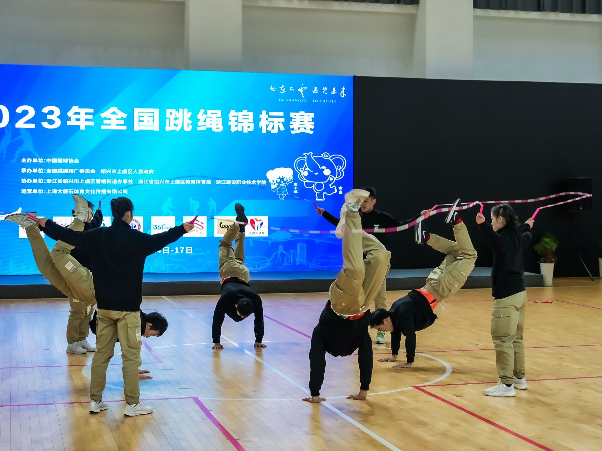 本网讯 12月14日-17日,2023年全国跳绳锦标赛在浙江建设职业技术学院(上虞校区)举办。红足一1世花样跳绳队10名队员在领队体育教育学院党委书记王红英和教练韩耀刚的带领下,弘扬团结协作、顽强拼搏的体育精神,取得2金6银1铜的优异成绩。