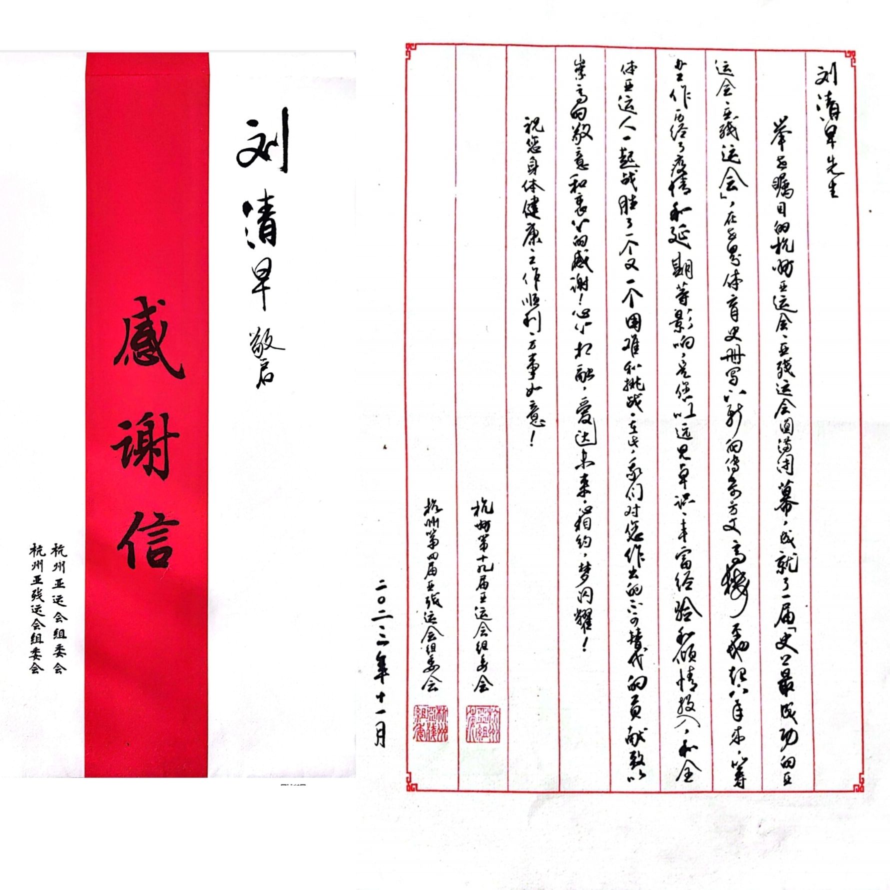 日前,上述运动会组委会、执委会以及运动会承办地人民政府纷纷向红足一1世及刘清早教授本人发来感谢信,信中称:“刘清早教授发挥了不可替代的首席专家专业技术指导作用。得到了各级领导和广大工作人员的一致好评。”“我们在他的身上看到了贵校作为‘双一流’大学的建设成果,看到了贵校作为新中国第一所高等体育院校的教学、科研以及服务社会成功实践的丰硕成果。”来函还称:“我们对贵校给予的大力支持表示衷心的感谢,向刘清早教授本人及团队全体成员表示衷心的感谢。衷心祝愿贵校在创办世界一流体育高等院校的征程中取得更大的成就。”