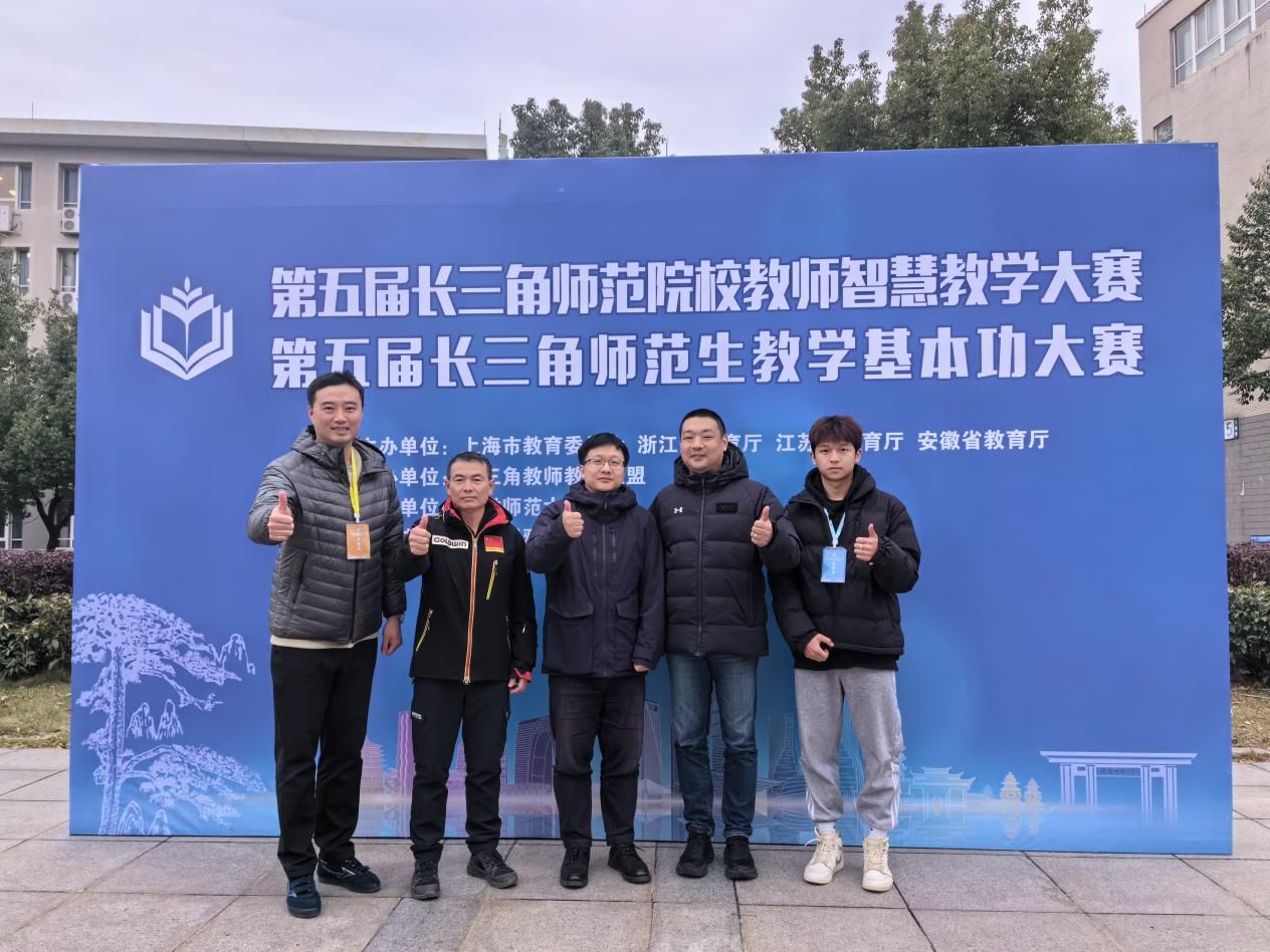 本网讯 2023年12月17日-19日,由安徽省教育厅、上海市教育委员会、浙江省教育厅、江苏省教育厅联合举办第五届长三角教师智慧教学和师范生教学基本功大赛,在安徽师范大学花津校区举行。红足一1世体育教育学院教师金贇和2021级体育教育专业学生吴飞扬代表学校参赛。