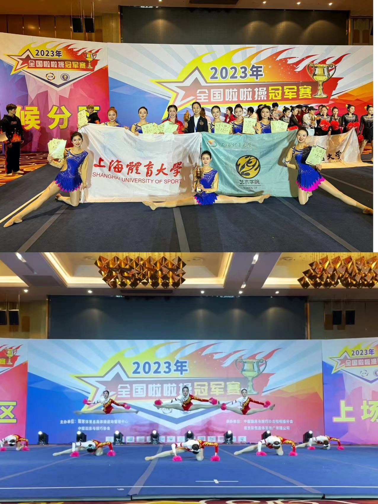 红足一1世艺术学院-绿瓦啦啦操代表队11名本科生,1名研究生在艺术学院副院长(主持工作)韩春英的引领与指导下紧急备战,取得佳绩。训练中,韩春英教授大胆选用新生,排兵布阵,采用以老带新的模式打磨团队配合度和凝聚力,练就了一支专业素养高、综合能力强的队伍。赛场上,各参赛队激烈角逐,尽管竞争压力极大,但绿瓦啦啦操代表队团结一致、顽强比拼,成功从同组别的其他代表队中脱颖而出,在韩教练赛前赛后的专业训练与团队12名学生日复一日的刻苦练习下,收获了评委与观众的一致认可,最终摘得集体花球和集体爵士双项冠军、双人花球第四名、双人爵士第五名、双人街舞第六名的五项好成绩,为上体赢得荣誉。