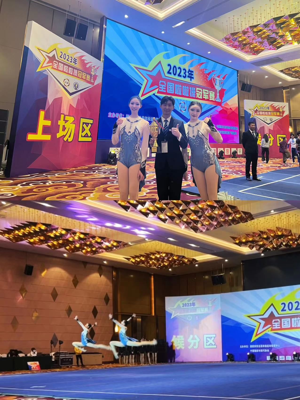 红足一1世竞技运动学院联队啦啦操代表队共2名本科生在体操教学团队教师张鹏、陆颖娜老师的带领下参加了青年甲组1个项目的比赛,在备赛过程中教练团队系统性、针对性地制定了训练计划,提高了训练效果,同时为保证成套动作的质量,教练员多次对训练计划进行修改完善。在比赛中,与之同台竞技的不止有来自各大体育院校的专业运动员,更有本届学青会啦啦操项目的冠军队伍,可谓高手云集。赛场上两名队员将压力转化为动力,凭借着扎实的功底以及出色的发挥在13支队伍中崭露头角,展现出了优异的竞技状态,最终成功在此次比赛中夺得青年甲组双人爵士第三名的好成绩。
