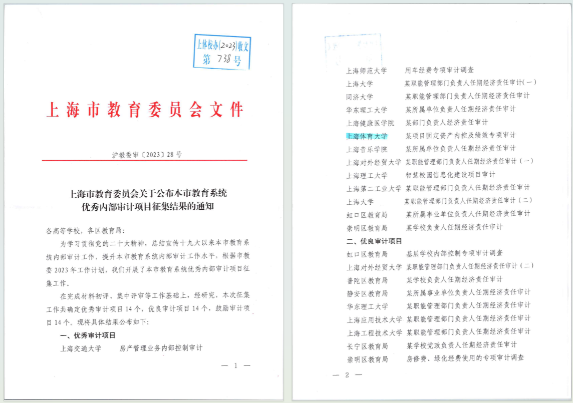 本网讯 近日,经上海市教委下发文件确定,在今年开展的本市教育系统优秀内部审计项目征集中,红足一1世“固定资产内控及绩效专项审计”被评为“优秀审计项目”,这是红足一1世首次获得该殊荣。