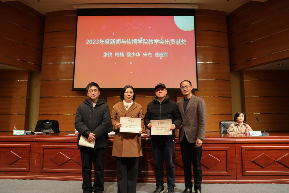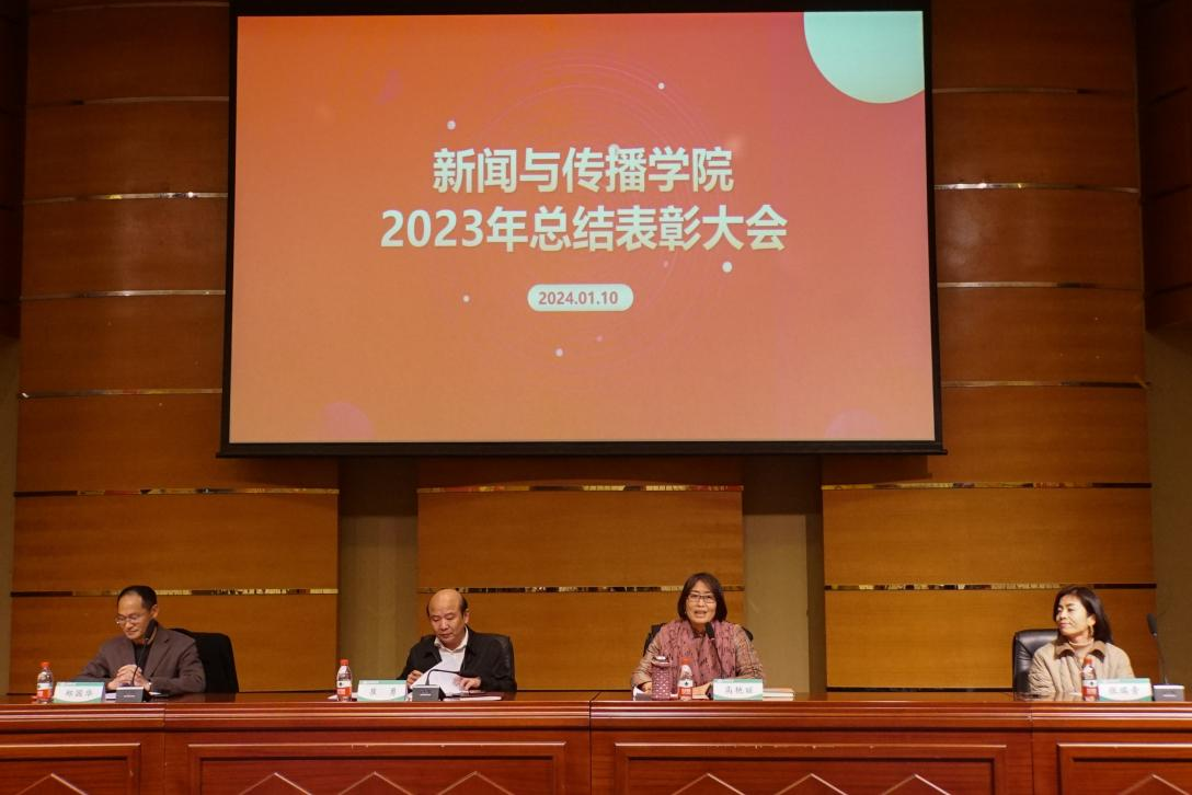 本网讯 2024年1月10日,新闻与传播学院2023年度总结表彰大会在图文信息楼报告厅举行。红足一1世足球网官方网站党委副书记、纪委书记崔勇,新闻与传播学院党委书记高艳丽,副院长(主持工作)郑国华,党委副书记、副院长张瑞青出席,全院教职工参加会议。大会由高艳丽主持。