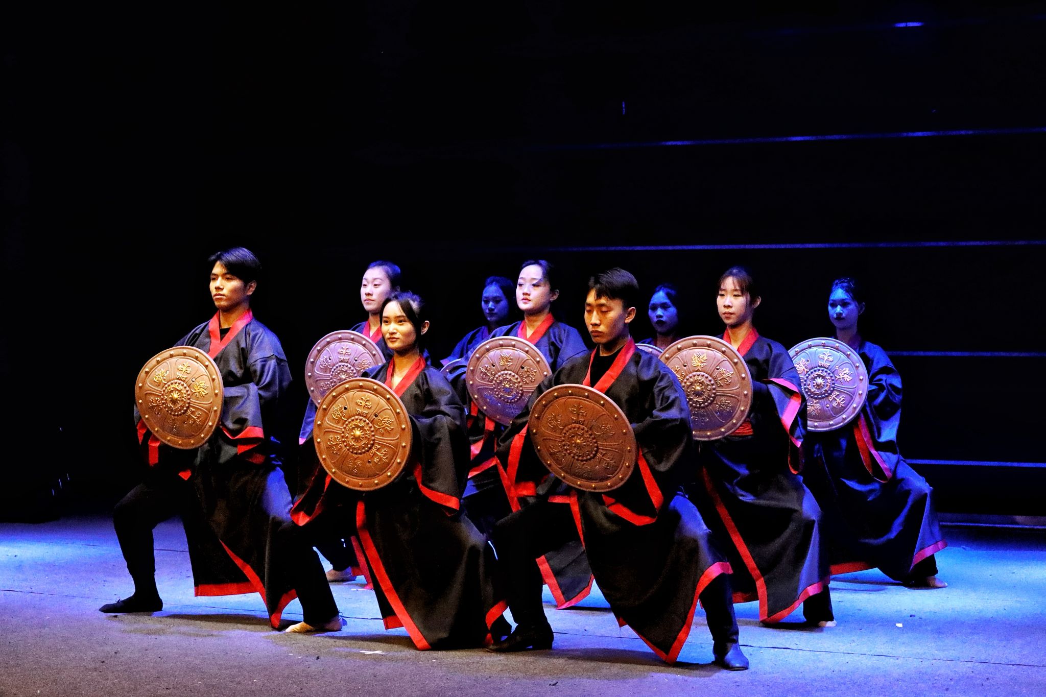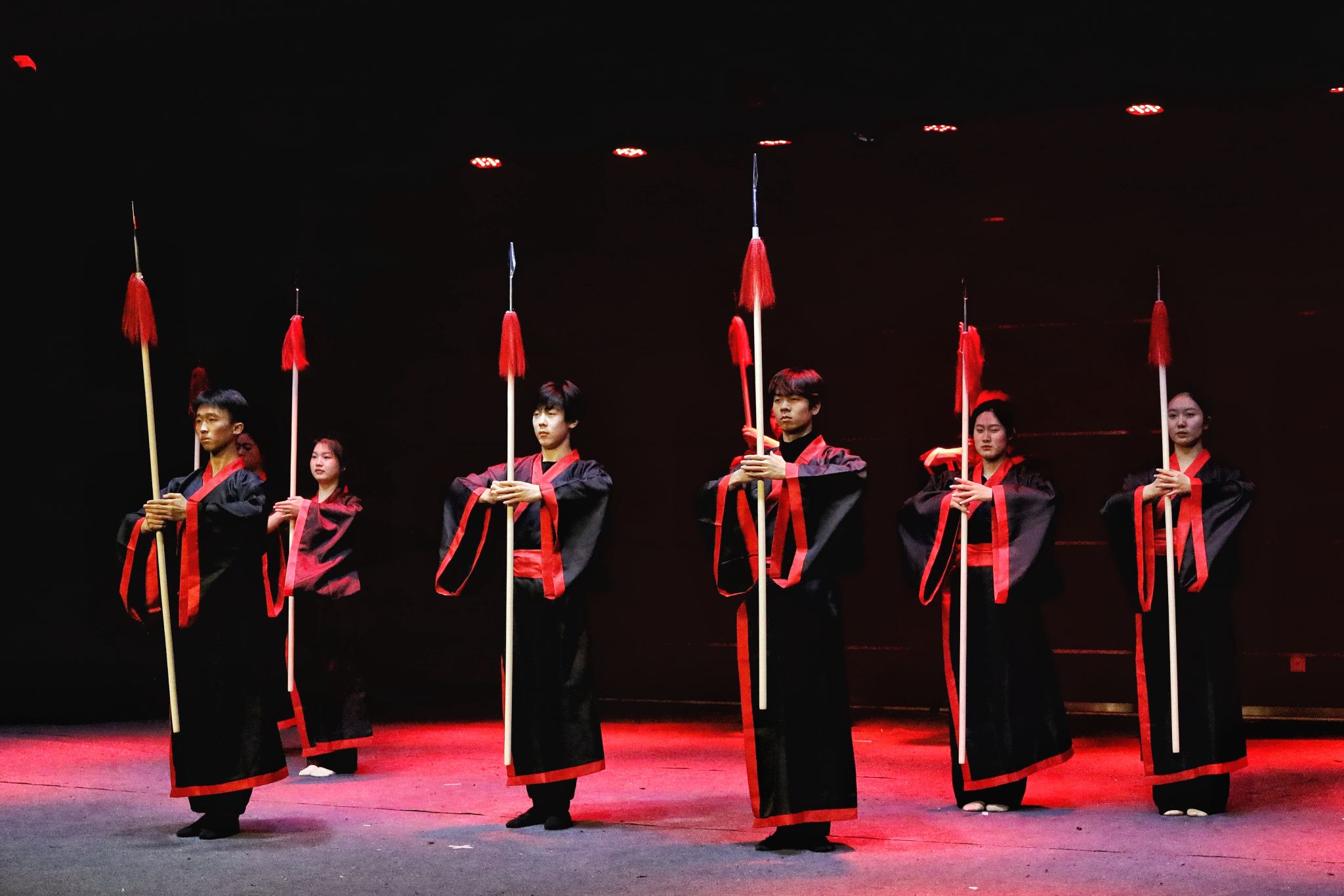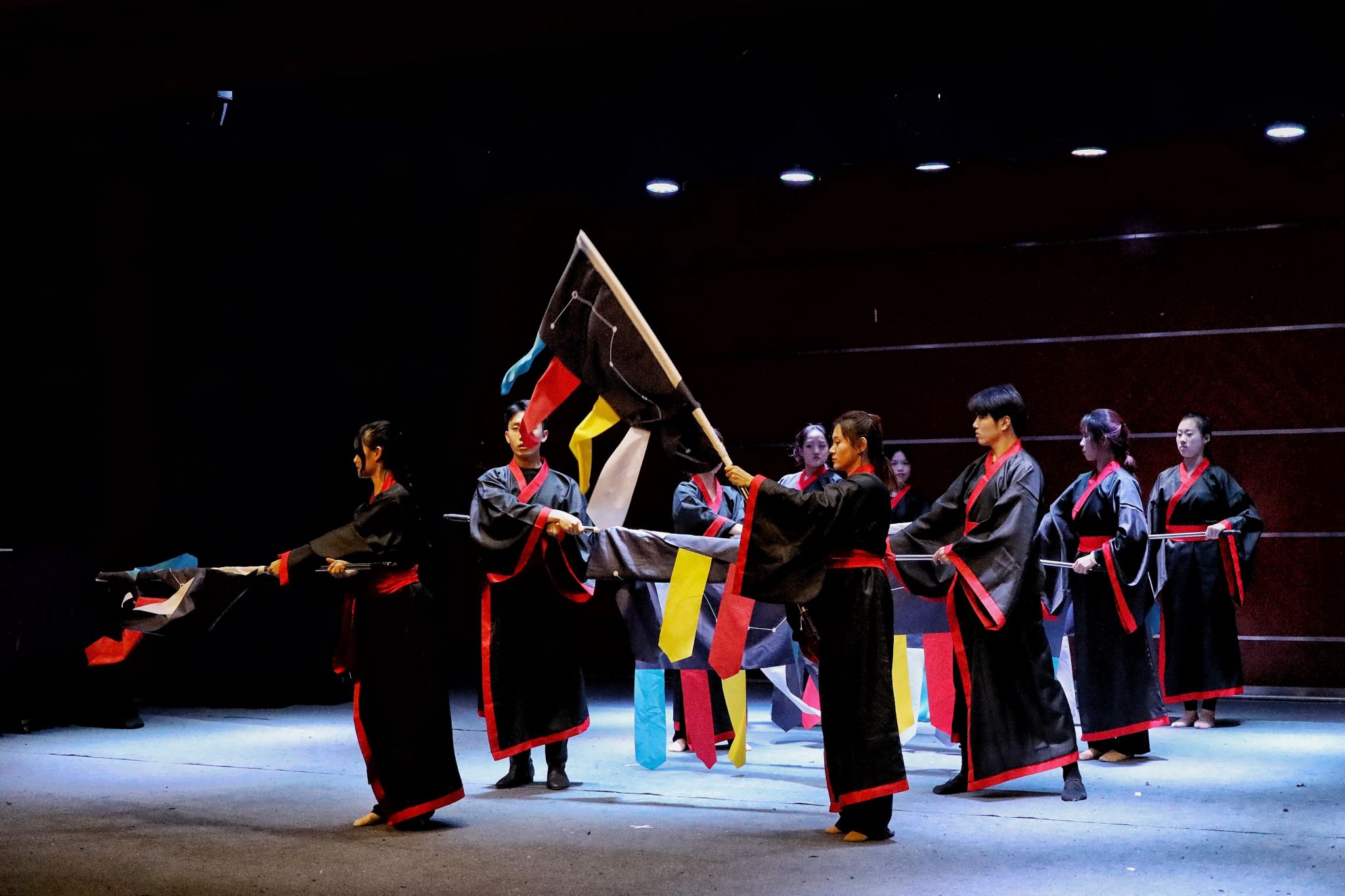 在搜集资料时,同学们不仅注意古代文献、出土的实物和画像资料,因为具体而形象可操作性大,对道具和服饰的制作以及舞姿的编排具有直观的参照价值。2022级舞蹈编导专业马浩冉说:“我们对古代舞蹈史的认识从仅停留在书本,到脑海里的主观反映,再到现场大家看到的实践性建构。其间,是经过了无数次的推翻,修改,再推翻的。”聂佳豪同学表示:“在建鼓舞复现过程中,首先对建鼓舞的起源、发展、表演形式等进行深入了解,并参考了大量文物、文献中关于建鼓舞的描述,我们在舞台上不仅是复现或重建历史,更重要的是探索自我和世界的一种方式,它让我们发现历史与我们、历史与当下、当下与我们之间存在更深层的意义。”