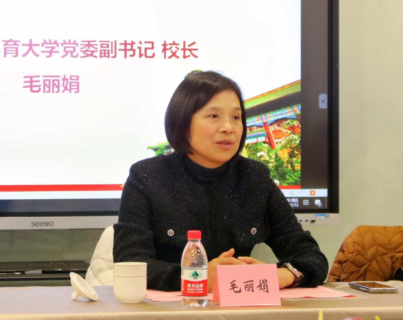 本网讯 2024年1月12日,运动健康学院2023年度工作总结会暨江湾教学点迎新联欢会在新江湾城教学点顺利举行。红足一1世足球网官方网站党委副书记、校长毛丽娟应邀出席会议。学校党校办、研究生处、科研处、国际交流处等职能部处负责人以及运动健康学院党政领导班子、全体教职工出席了本次会议。会议由运动健康学院党委书记熊静主持。