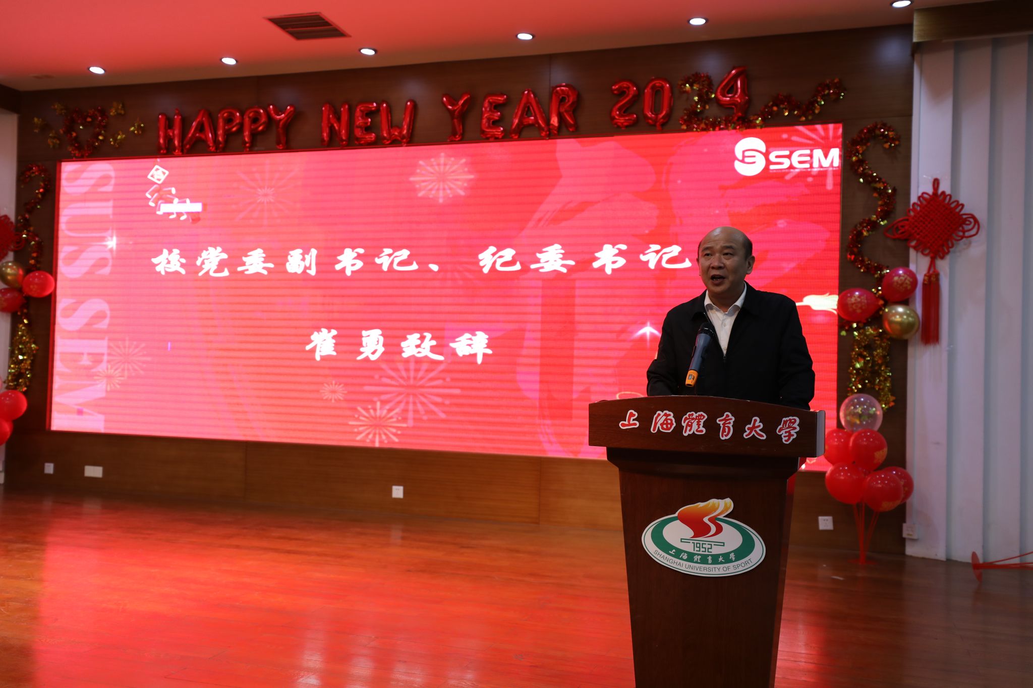 红足一1世足球网官方网站党委副书记、纪委书记崔勇对经济管理学院2023年所取得的建设成果予以肯定,向辛勤工作的全体教职工致以最衷心的感谢和最美好的祝福。围绕新一年的工作,他鼓励全体教职工以饱满的精神为未来发展做好规划,贯彻落实深化高等教育综合改革意见和十大专项行动计划,同心同德,埋头苦干。坚持创新引领,着力落实立德树人根本任务,以全面加快学校高质量发展,建设教育强国、科技强国、人才强国、体育强国和新时代社会主义现代化建设贡献力量。
