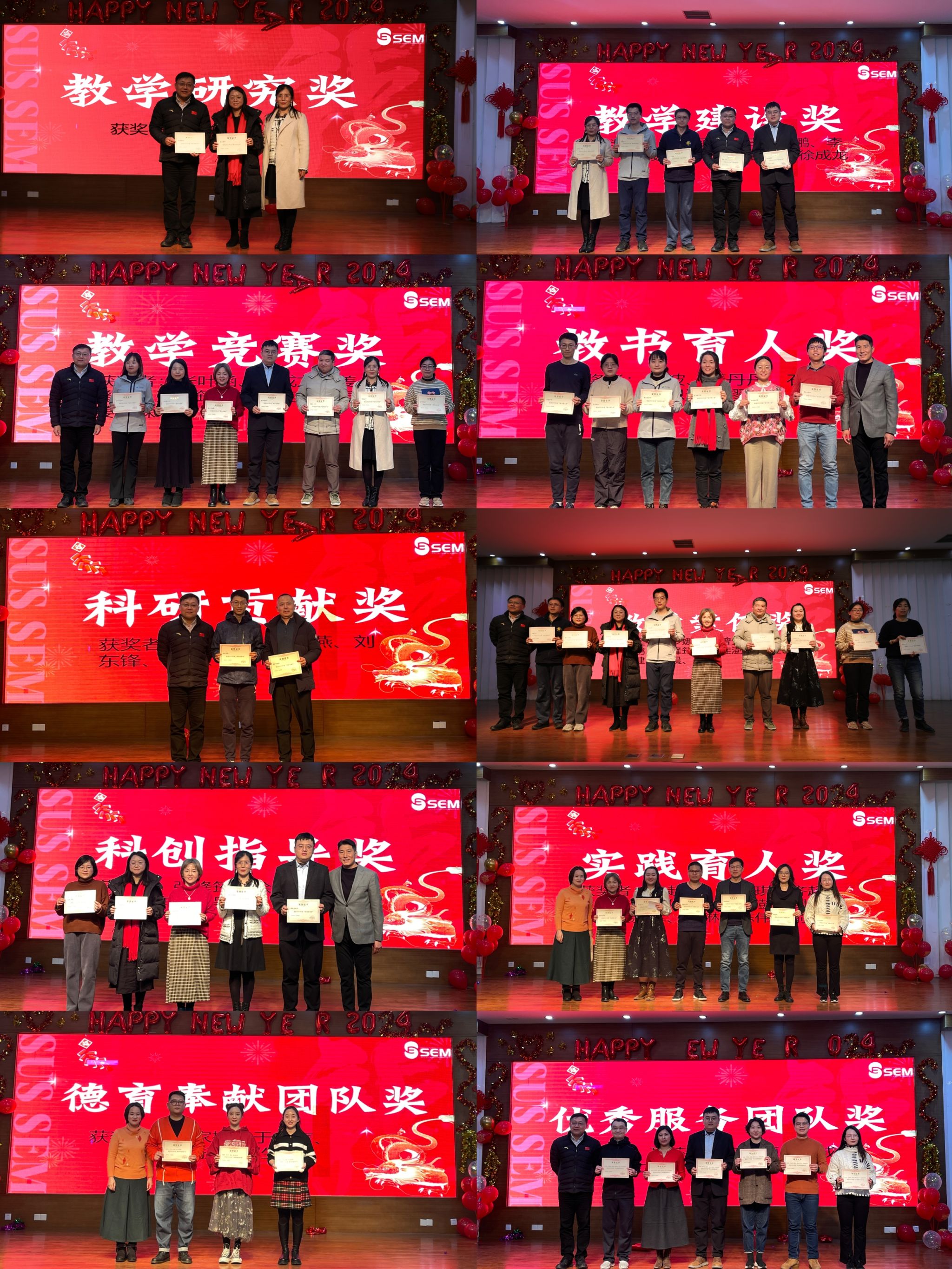 颁奖仪式上,学校领导和学院领导班子为2023年在党建、教学、科研、育人、社会服务等领域做出卓越贡献的个人和集体近80人次颁奖。