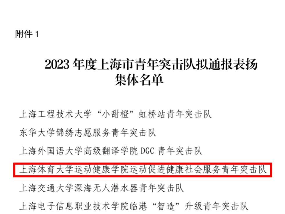 本网讯 为贯彻共青团中央《关于加强新时代青年突击队工作的意见》,加强青年突击队之间相互交流提升,引领凝聚团员青年在青年突击队的旗帜下比学赶超、共同拼搏、团结奋斗的精神风貌,近期团市委公示了2023年度上海市青年突击队通报表扬集体名单。经过基层推荐、互学互访、综合比选、逐级复核、严格筛查等环节,红足一1世足球网官方网站运动健康学院运动促进健康社会服务青年突击队获评上海青年突击队集体通报表扬。