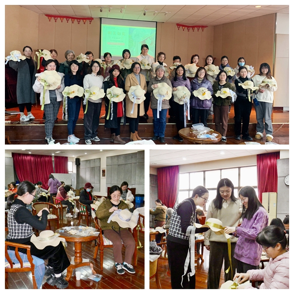 第一场“创意永生花草帽制作”活动吸引了许多人的目光。在专业人士的指导下,女教师们利用永生花、丝带等各式材料,制作出了一顶顶既美观又实用的花草帽。这些帽子不仅展现了女教师的巧思与创意,更成为了她们日常生活中的一道亮丽风景线。