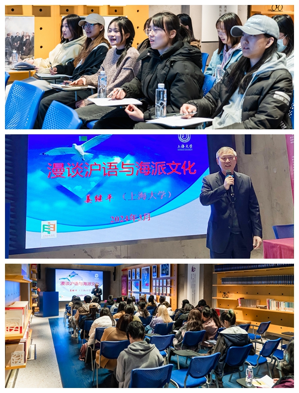 值得一提的是,我们还特别邀请了上海大学老年大学校长姜继平老师为女教师代表、女大学生代表带来了一场“‘看繁花’,漫谈沪语与海派文化”讲座。通过讲座,大家更加深入地了解了上海的历史文化和语言特色,体验了说沪语,云游了上海滩,感受到了海派文化的独特魅力。