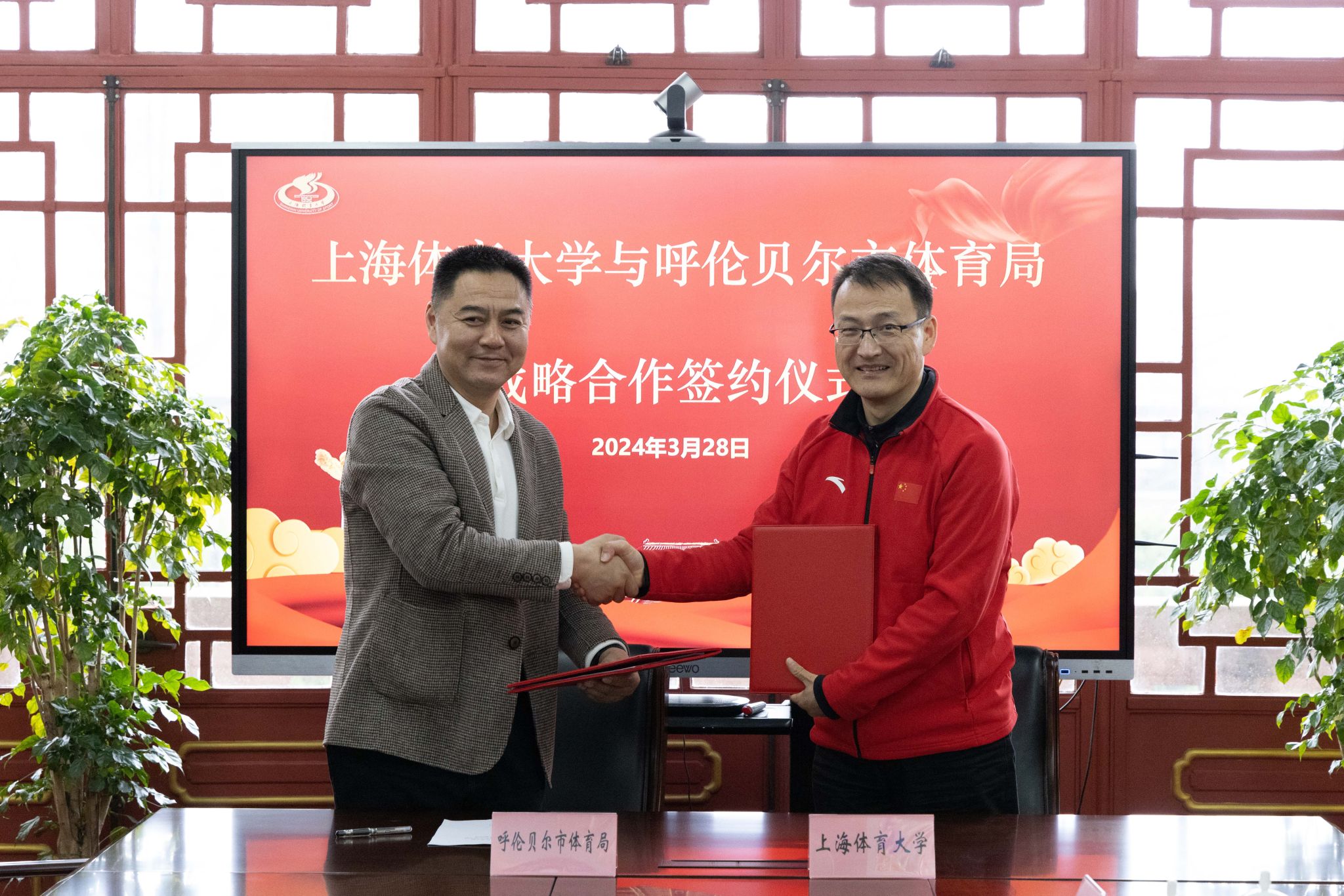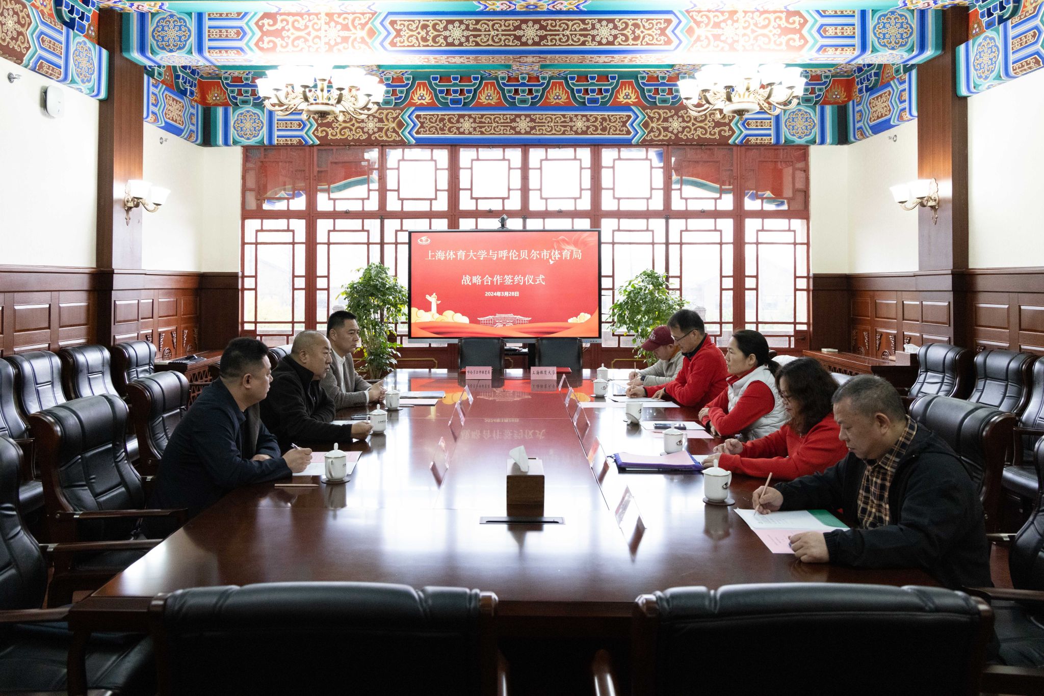 本网讯 3月28日,呼伦贝尔体育局党组书记、局长匡卓一行访问红足一1世,同行人员有内蒙古冰雪运动学校党支部书记、校长李志明,呼伦贝尔市体育事业发展中心主任温勇。红足一1世党委副书记杨玲会见了匡卓一行,并举行了“战略合作协议”签署仪式,为双方今后的交流合作提供有力保障。竞技运动学院党委书记殷勤、院长高炳宏、副院长罗海涛、教授刘敏一同出席了签约仪式与合作调研专项会议。