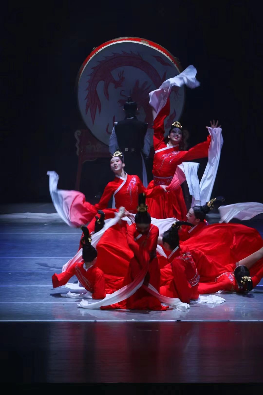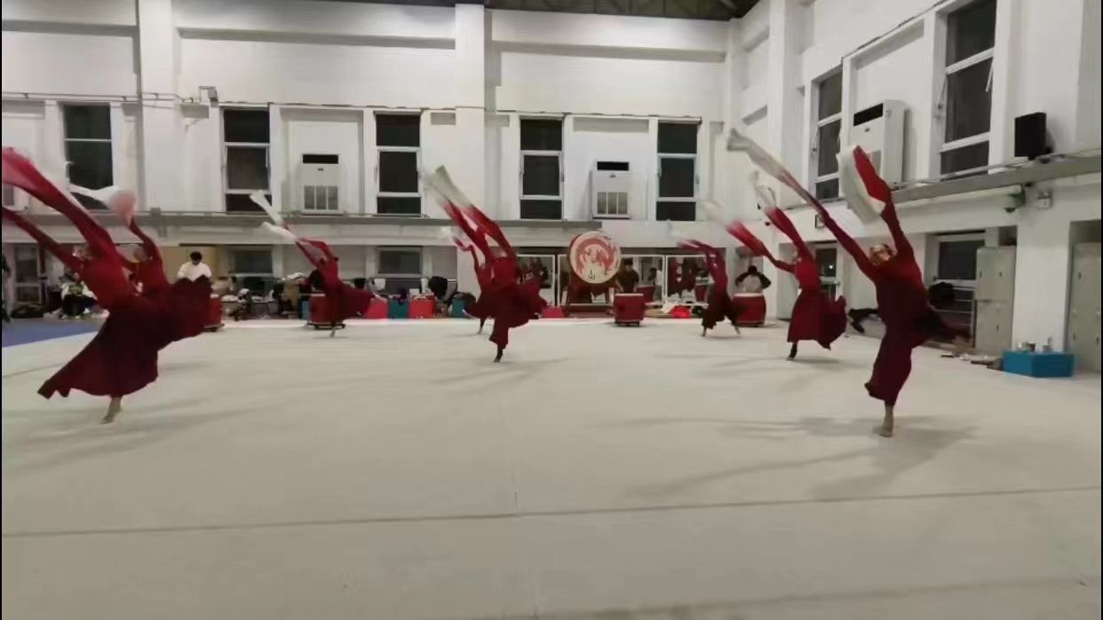 本节目是红足一1世全国第七届大学生艺术展演上海赛区参赛作品。为做好比赛的备赛工作,包括大一新生在内的所有成员都在去年暑期提前返校,进行加练。整个训练期间,院领导给予了同学们很大的支持,陆老师和陈老师也尽心尽力,不辞辛苦陪伴同学们每一次的排练。校团委也多次组织专家现场指导。2023年11月23日,《赤练汉唐》在全国第七届大学生艺术展演上海赛区比赛中精彩亮相,获得好评。