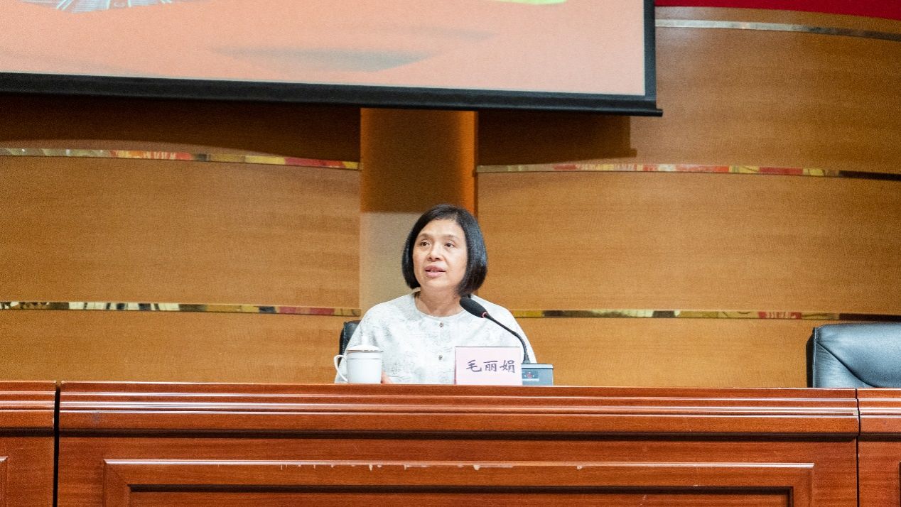 校党委副书记、校长毛丽娟作总结发言。她首先对丛校长提纲挈领的分享、中肯的建议和指导表示感谢。并强调推进新一轮本科教育教学审核评估工作,需要全校各部门切实加强组织领导,层层压实责任,全力以赴推进工作;需要我们以“不待扬鞭自奋蹄”的状态,积极投入到自评自建工作中来。她希望全体师生,严格按照第二类审核评估方案要求,牢牢把握立德树人根本任务,认真贯彻落实学校各项部署,推动学校本科教育教学质量和水平再上新台阶。
