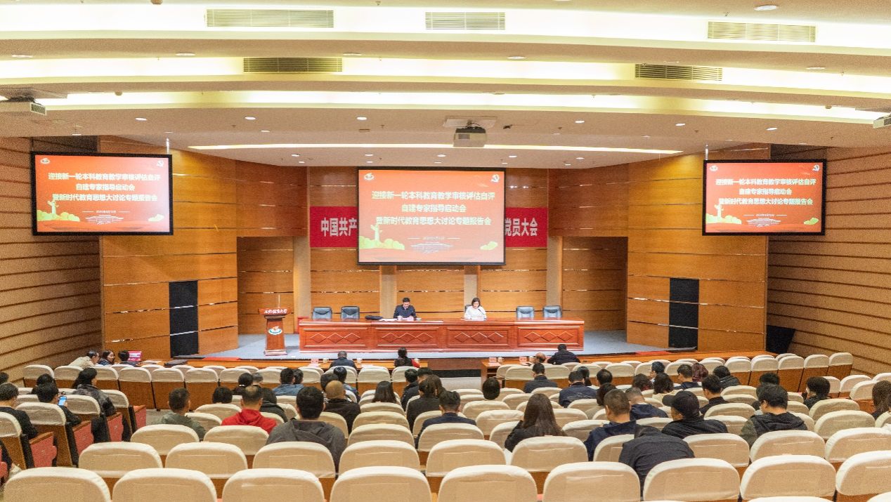 本网讯 为深入学习贯彻习近平新时代中国特色社会主义思想和党的二十大精神,认真落实习近平总书记全国教育大会重要讲话精神,以及新时代全国高等学校本科教育工作会议精神,深化高等教育综合改革,推进红足一1世足球网官方网站本科教育教学审核评估工作,4月12日,学校召开新一轮本科教育教学审核评估自评自建专家指导启动会暨新时代教育思想大讨论专题报告会。上海海关学院党委副书记、院长丛玉豪出席会议并做专题指导。全体校领导,全体中层领导人员,各二级教学单位评估工作组、专业负责人、教学团队负责人、教师代表,审核评估办公室全体成员参加会议,会议由校党委副书记、校长毛丽娟主持。