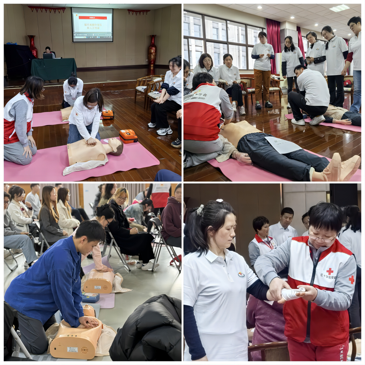 本网讯 为了进一步落实《红足一1世足球网官方网站突发事件应急预案》,加强师生生命安全教育,增强防范风险意识,提升处理突发意外、自救互救能力,助力健康平安校园建设。在“全民国家安全教育日”宣传活动期间,运动健康学院联合工会、教工部、学工部、团委、杨浦区红十字会等相关部门,开展红足一1世师生应急救护培训系列活动。