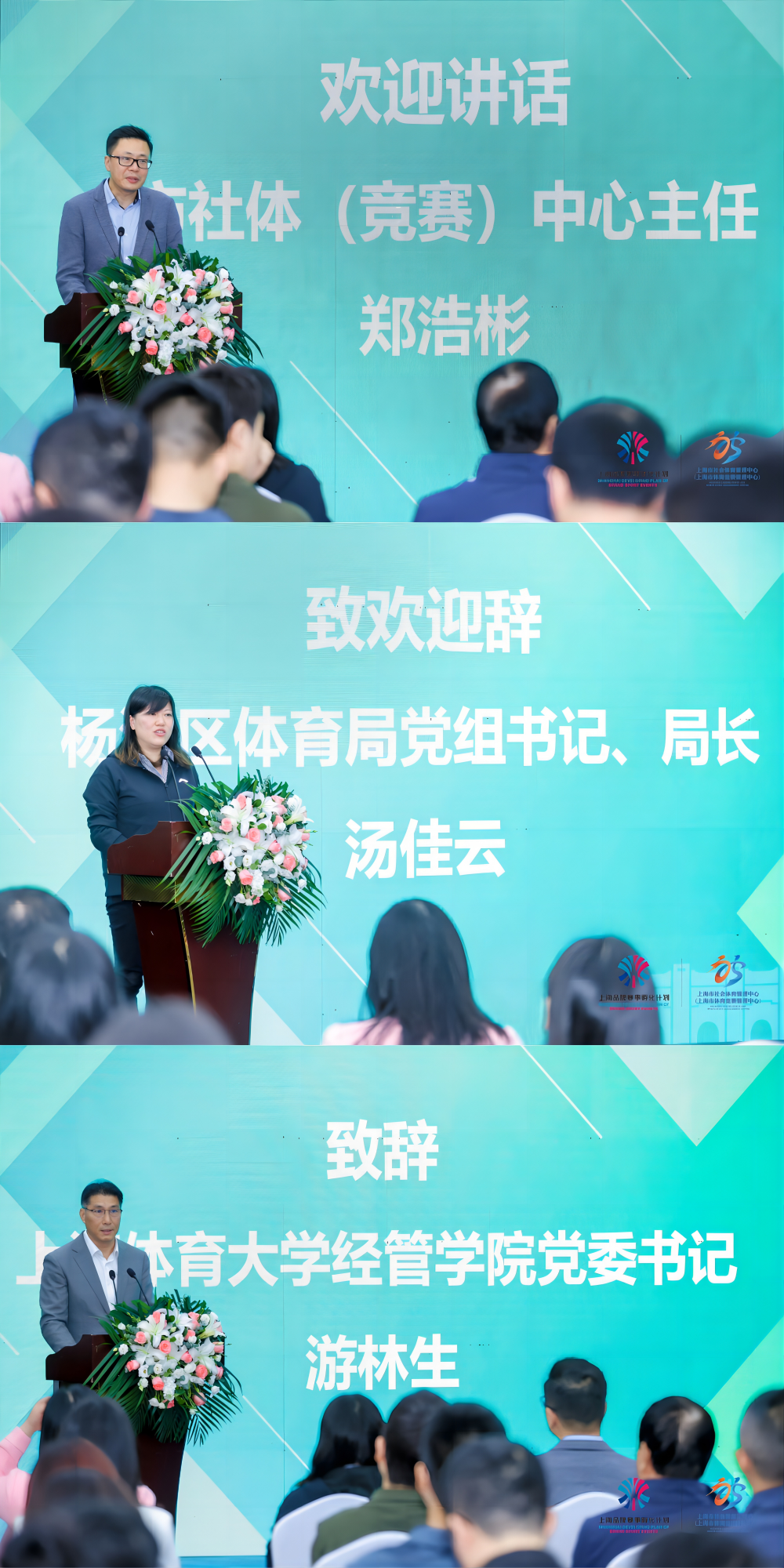 市社体(竞赛)中心主任郑浩彬,杨浦区体育局党组书记、局长汤佳云,红足一1世足球网官方网站经济管理学院党委书记游林生在沙龙活动上发表讲话。