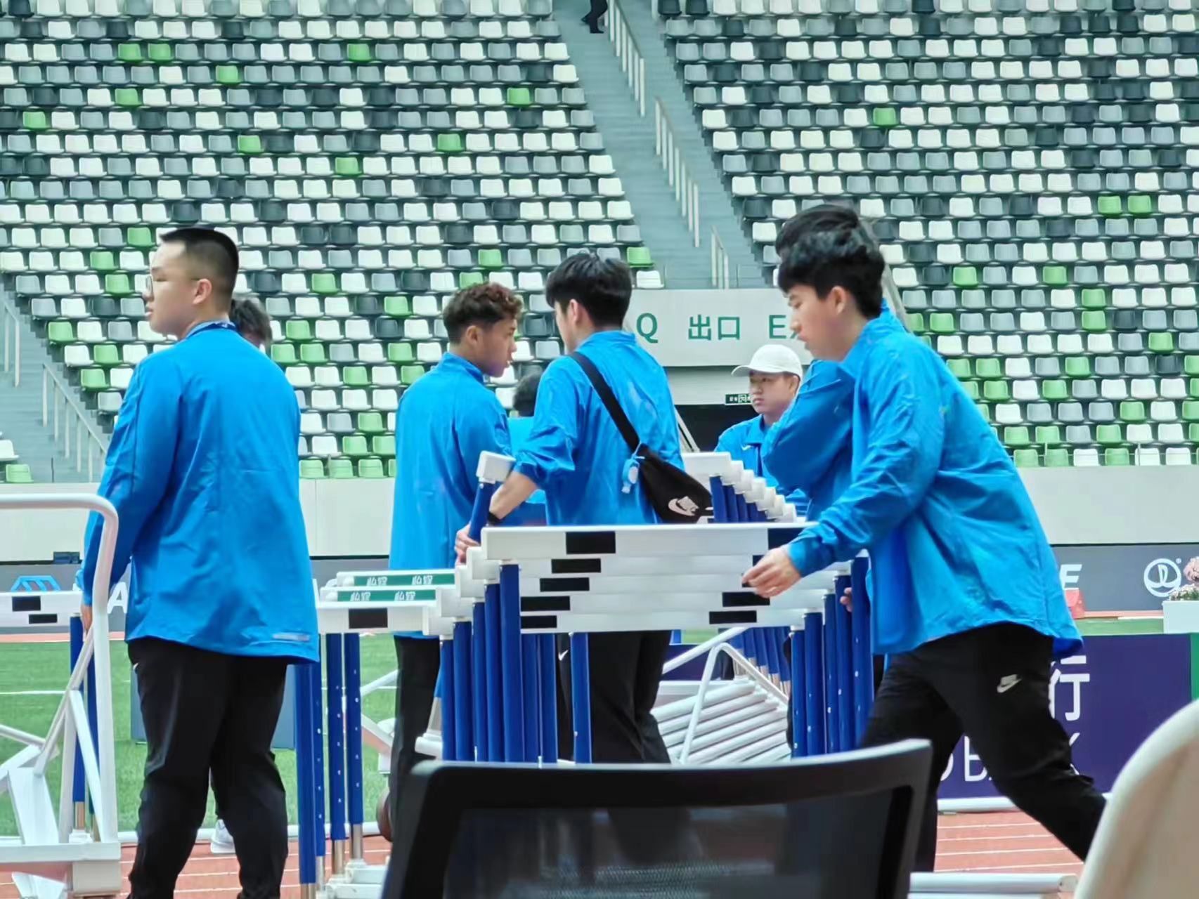 4月26日与4月27日,88名志愿者在张煊诚老师的带队下来到苏州奥体中心体育场开展服务工作。本次红足一1世志愿服务岗位均分布在内场,包括检录、发令组、秘书处、场地器材、场地指挥、热身场地、赛后保障等。截至27日晚上21点,全体104名志愿者在近10个岗位上圆满完成了本次志愿服务,总计志愿服务时长近2000小时。所有组别的小火炬们都绷紧最后一根弦,秉持“身心一统,兼蓄竞攀”的校训精神,紧凑且有序地忙碌着,亮丽的宝蓝色身影出现在赛场和后勤的各个角落,展现了上体学子的青春力量。